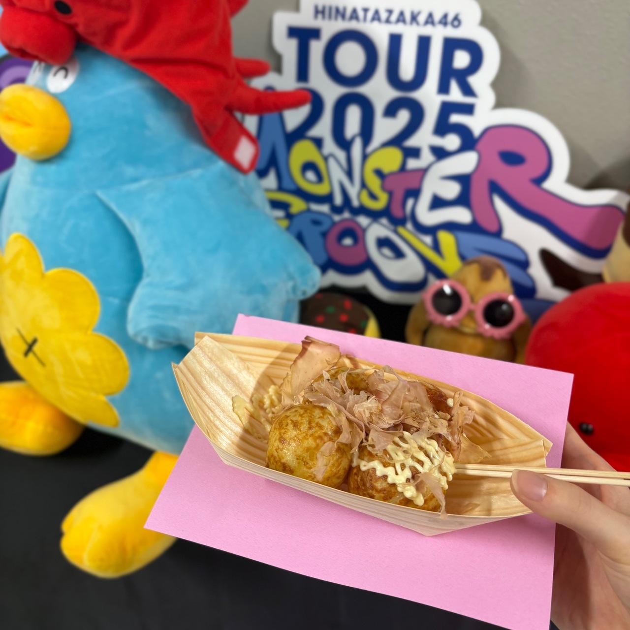 鶴崎仁香「大阪といえば!美味しいものもたくさん思い浮かぶよね💭例えばたこ焼き!豚まん!串カツ!うどん!肉吸い!!!昨日ケータリングにて肉吸いをいただいたのですが、これが美味しすぎてびっっくり。高井りきゃたんもハマりすぎて2人でこれ美味しすぎるんやけど!!と意気投合しました。でもやっぱり外せないのがたこ焼きです。大阪に来たら絶対に食べるぞ!と意気込んでいたので、無事に食べることができて幸せ…!」