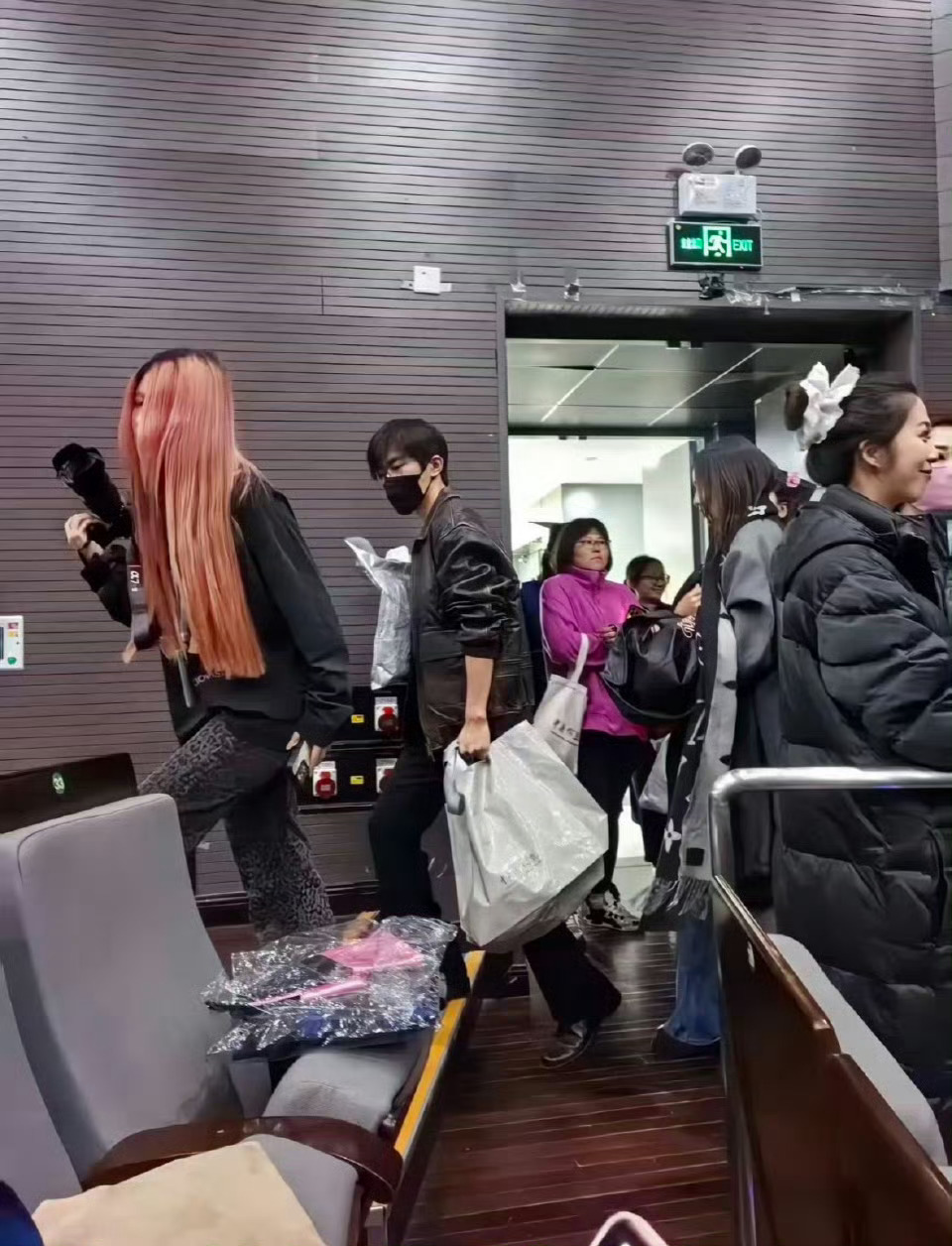 张天爱跟素人合影,胯真的好宽,大宅院似的
