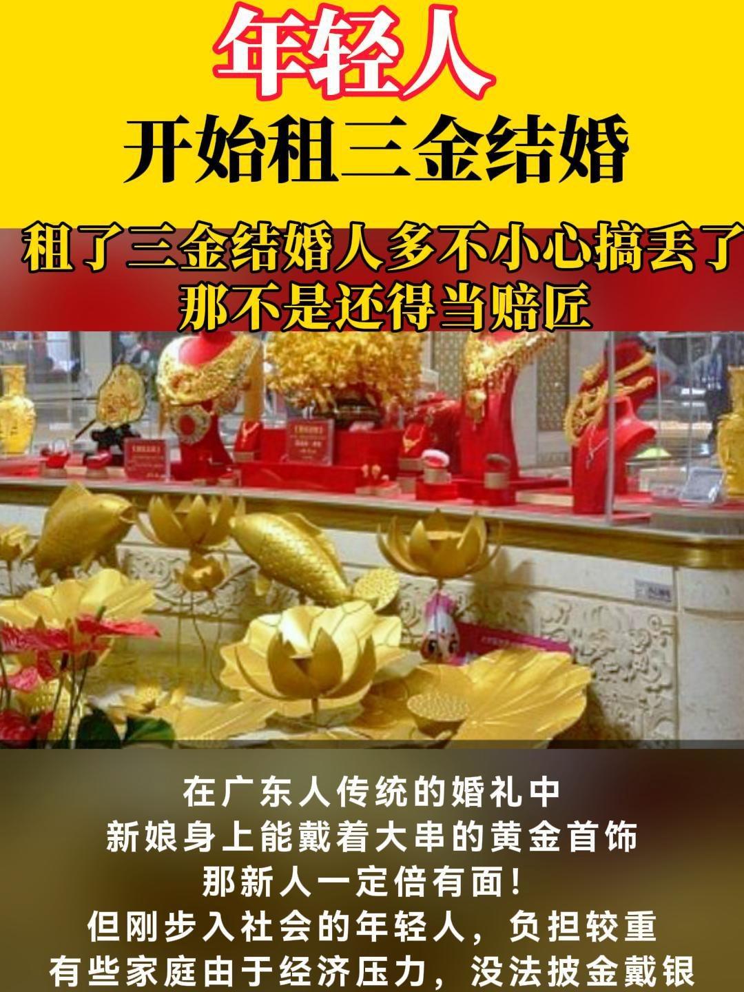 如今,年轻人结婚的习俗有了新变化,从购买三金转变为租赁三金,这一改变饶有趣味。在传统观念中,三金作为男方赠予女方的聘礼,体现了对新娘的珍视,象征着婚姻的美满。然而,当下金价一路高涨,彭博社报道黄金价格曾大幅飙升,上海黄金交易所Au99.99黄金价格更是突破了每克1000元。 在此情形下,不少新人选择租赁三金。成都的陈女士就租了一套超过50克的重工黄金首饰,7天的租金不到1000元,若购买则需花费6万多元,且婚后也不会佩戴,购买后闲置着实浪费。租赁网数据显示,5月黄金租赁订单量同比激增210%。 不过,老一辈对此难以理解,他们认为黄金是婚姻的保障,也是一种体面的象征。但年轻人的这一选择,既务实又不失仪式感,反映出消费和生活态度的转变。 结婚黄金 订婚三金 婚嫁金饰 三金彩礼 婚嫁三金 黄金结婚五金 婚三金五金
