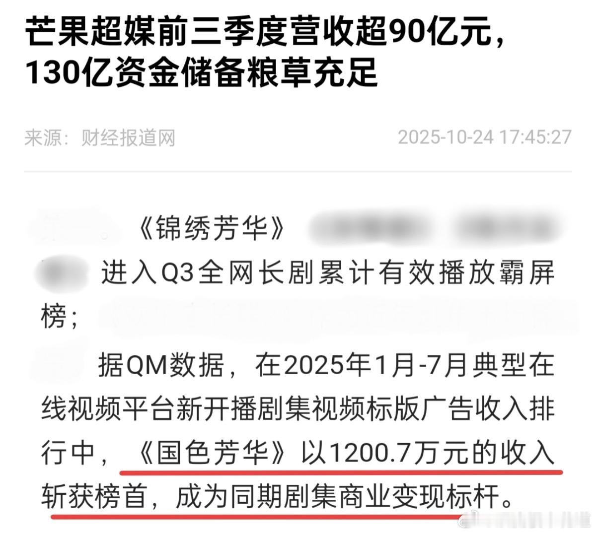 国色芳华又拿了一个今年1-7月榜单全平台第一,证明变现能力很强,数据进一步佐证这部剧播得好。