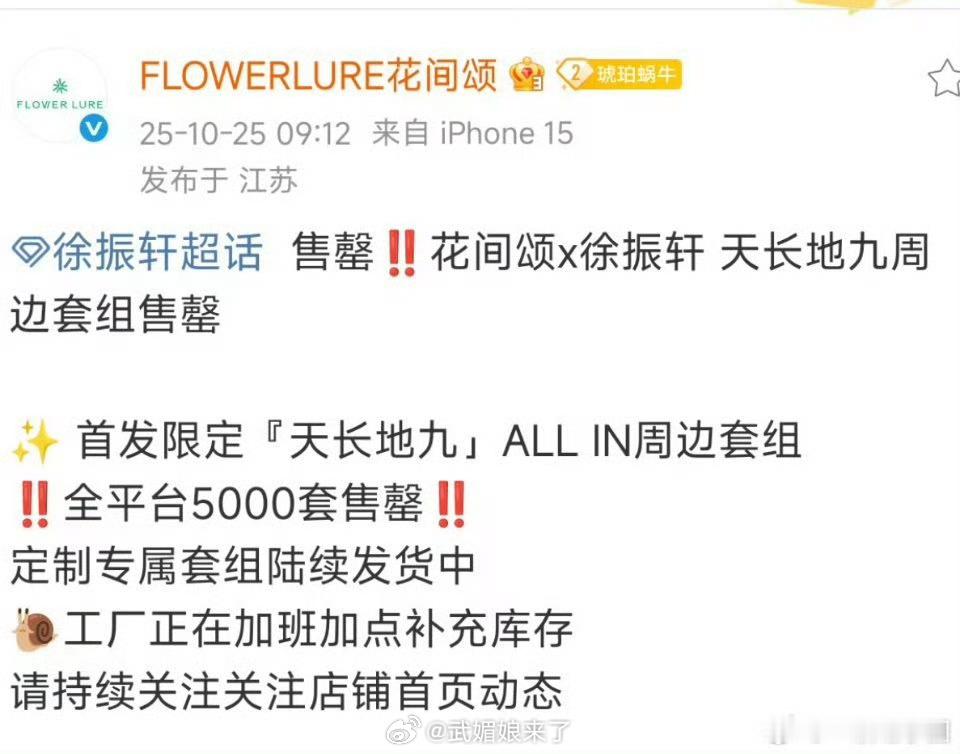 徐振轩新商务官方战报,5000套都售罄了!这个带货实力很牛了