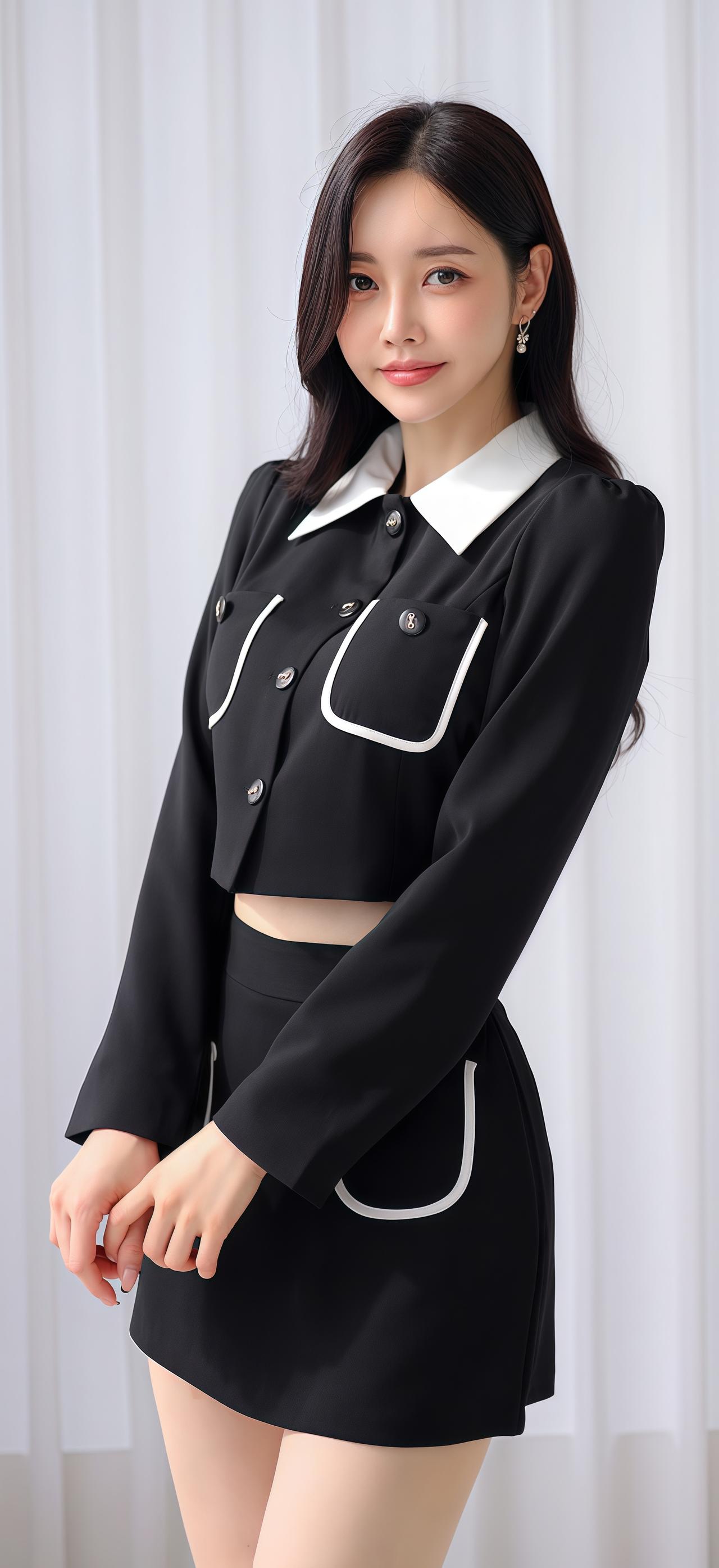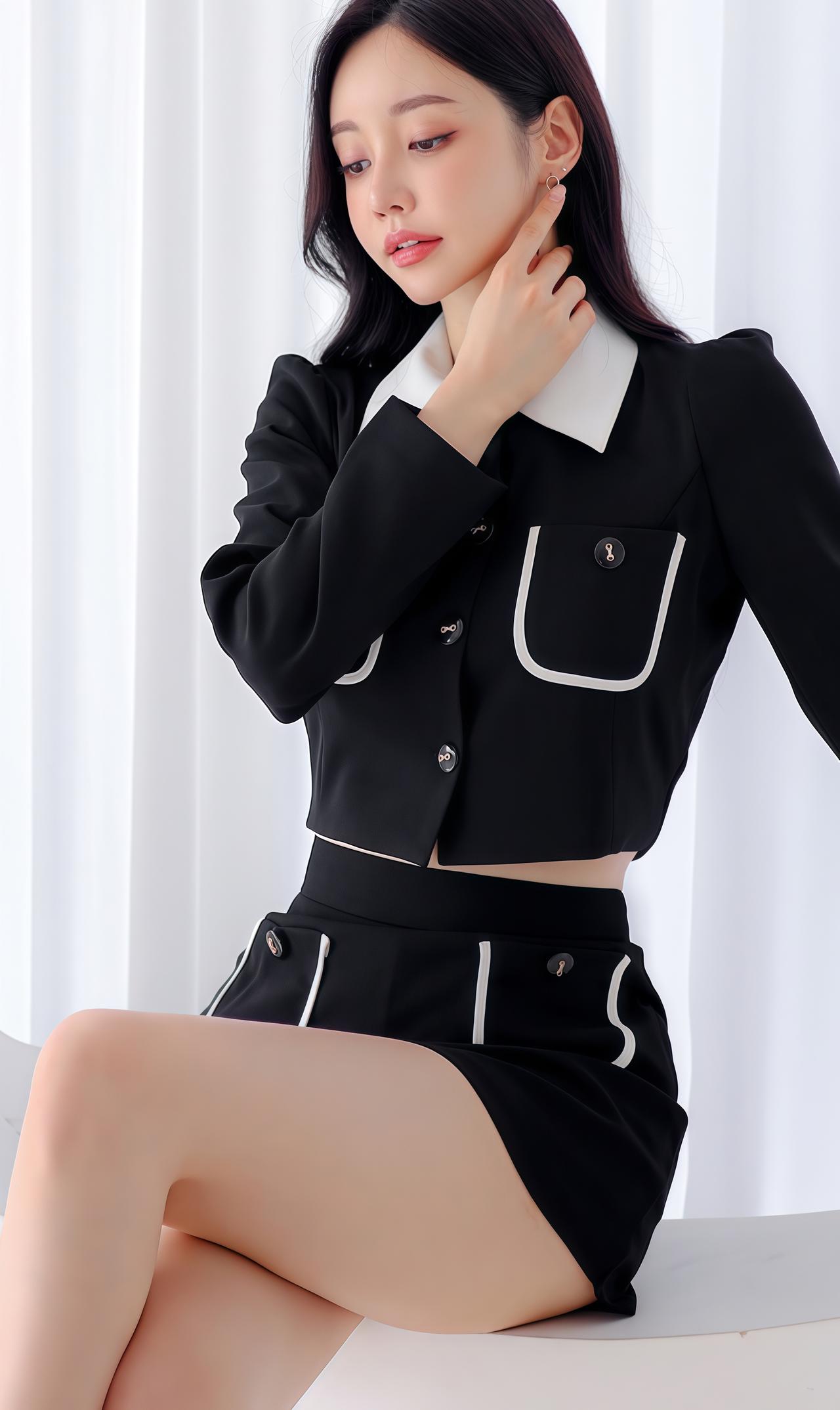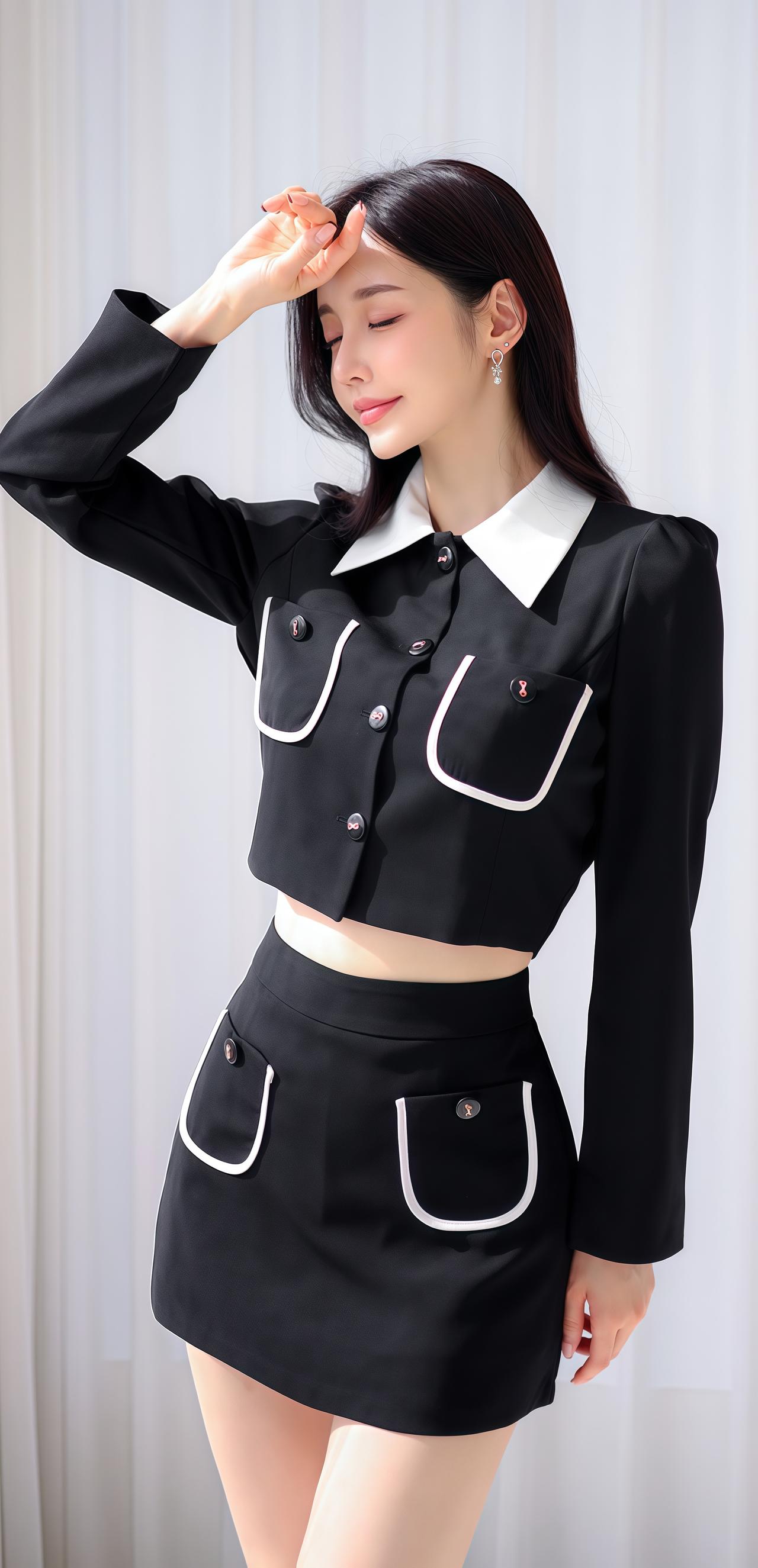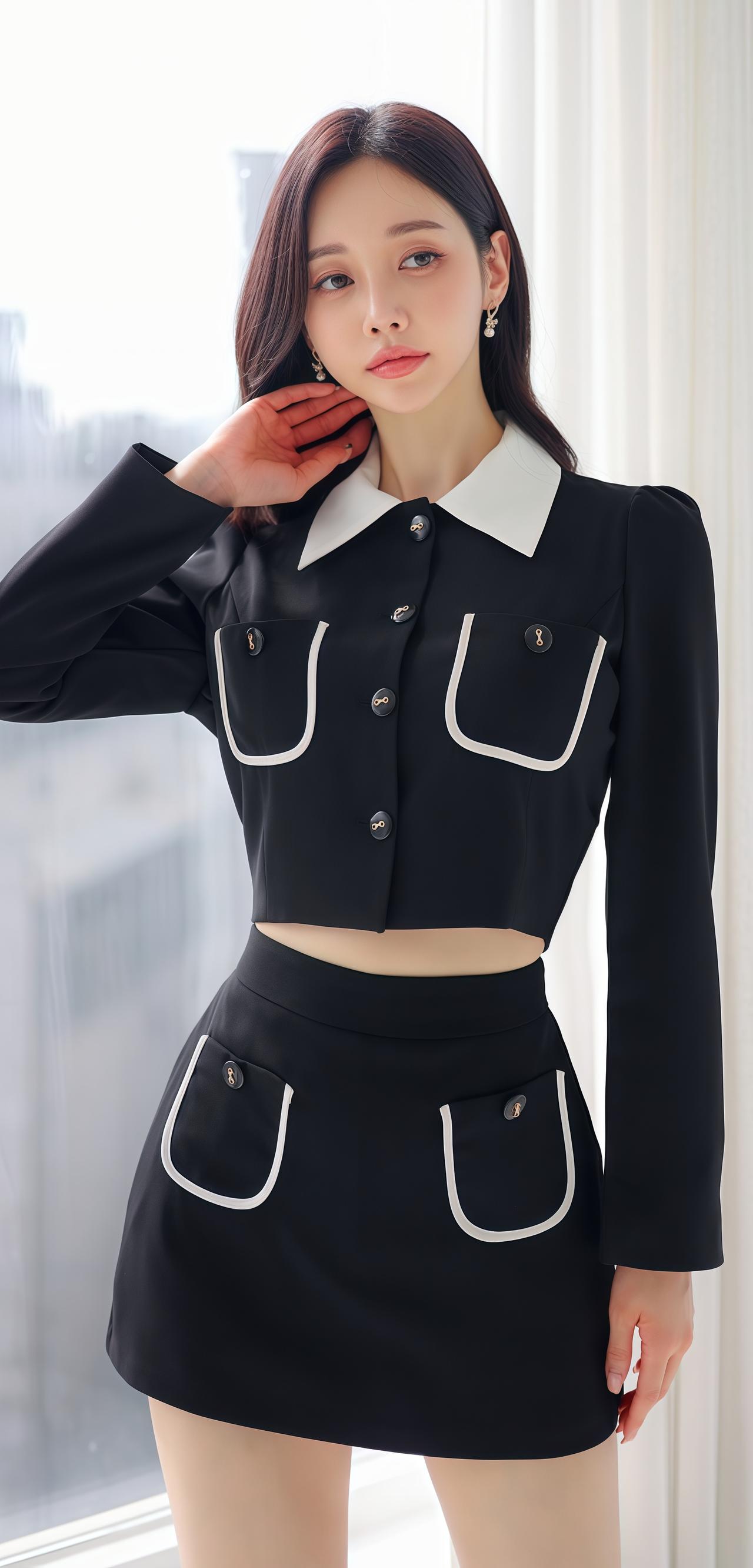 孙允珠优雅黑裙,复古镜前,尽显迷人魅力。