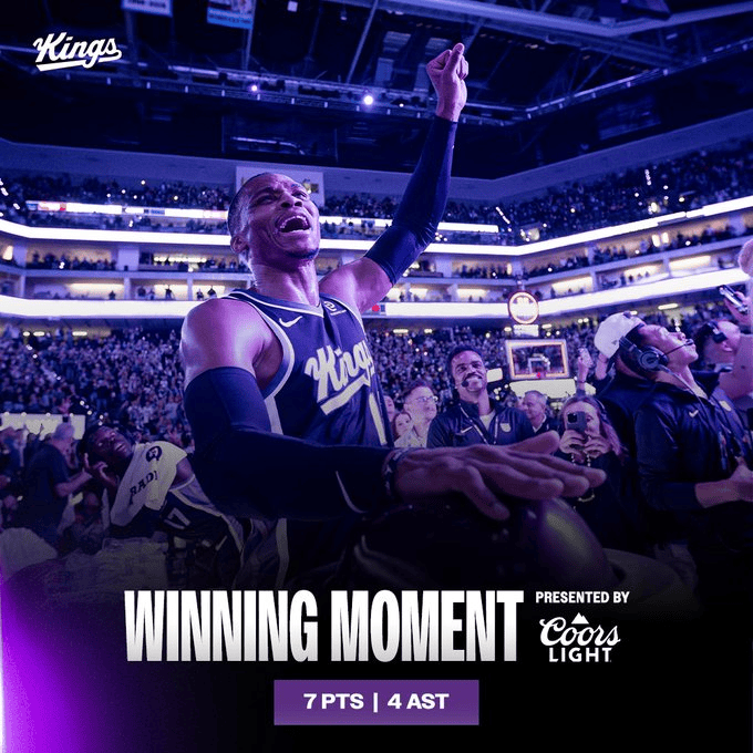 赛后,国王官方晒出威斯布鲁克本场数据海报,并配文道:“重回闪耀时刻。”