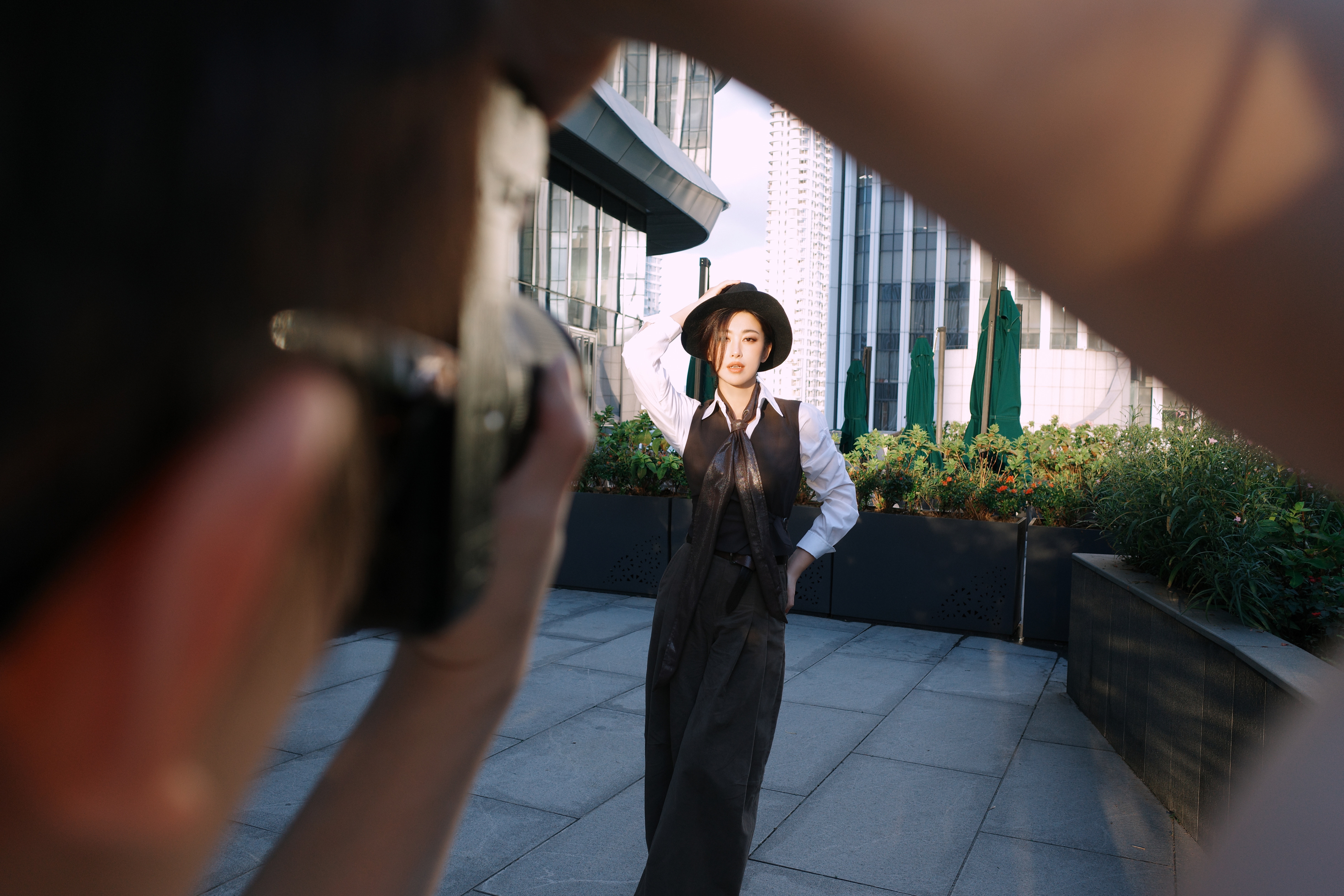 张天爱跟素人合影,胯真的好宽,大宅院似的