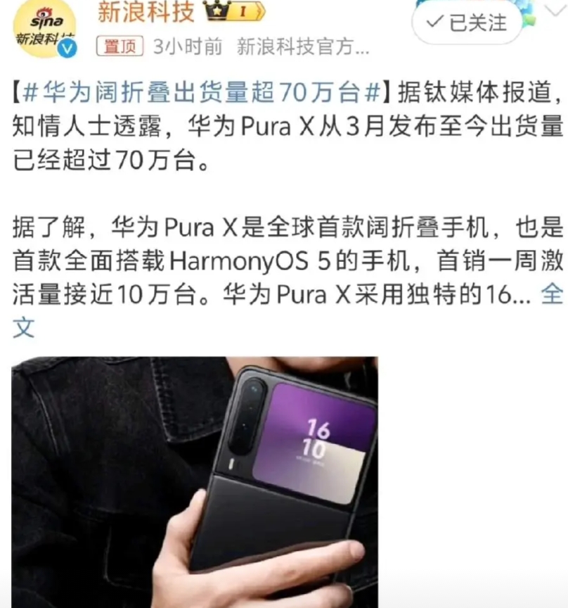 竟然70万台了!被骂得最惨哈,偏偏你最争气! 原本还想偷笑,因为被余承东一句“人人买得起”给搞黄了,结果不仅没降反而卖爆了,友商是怎么也没料到,怎么华为就这么受“原谅”, 但其实真正原因就是因为它太“对胃口了!” 对比传统手机的升级那种参数升级,pura X是真的全新升级,而更厉害的是华为成功在固有的手机认知里成功开辟出一条的手机延伸方向!