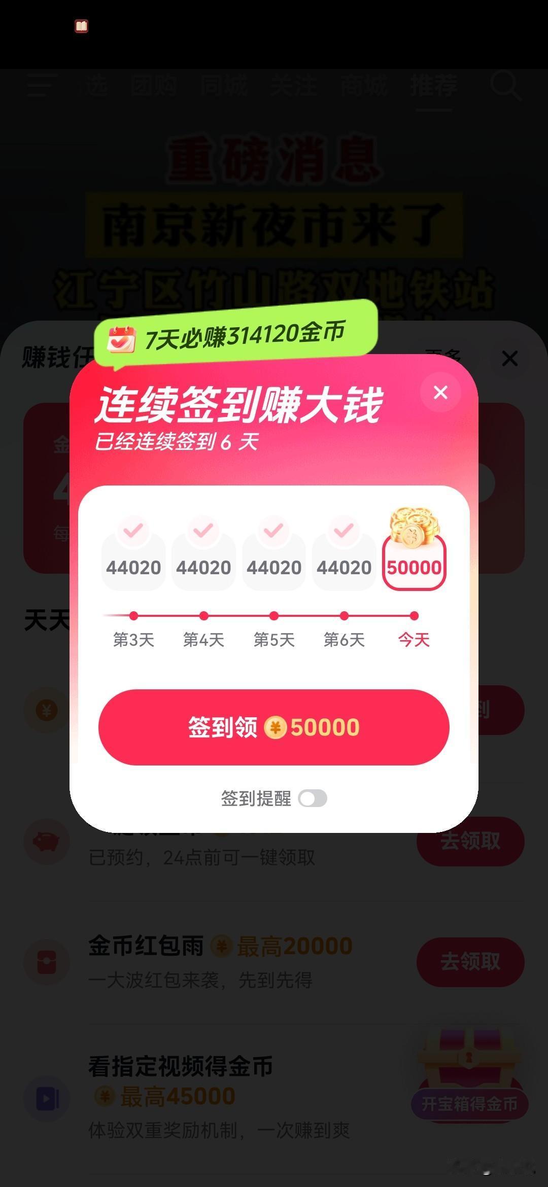 抖音极速版给了我一波大的 还有比这更大的吗? 可能是因为我用了一个新手机吧 也可能是因为我有一段时间没登录这台手机 反正这波能抵我旧号一个月的金币了 抖音极速版