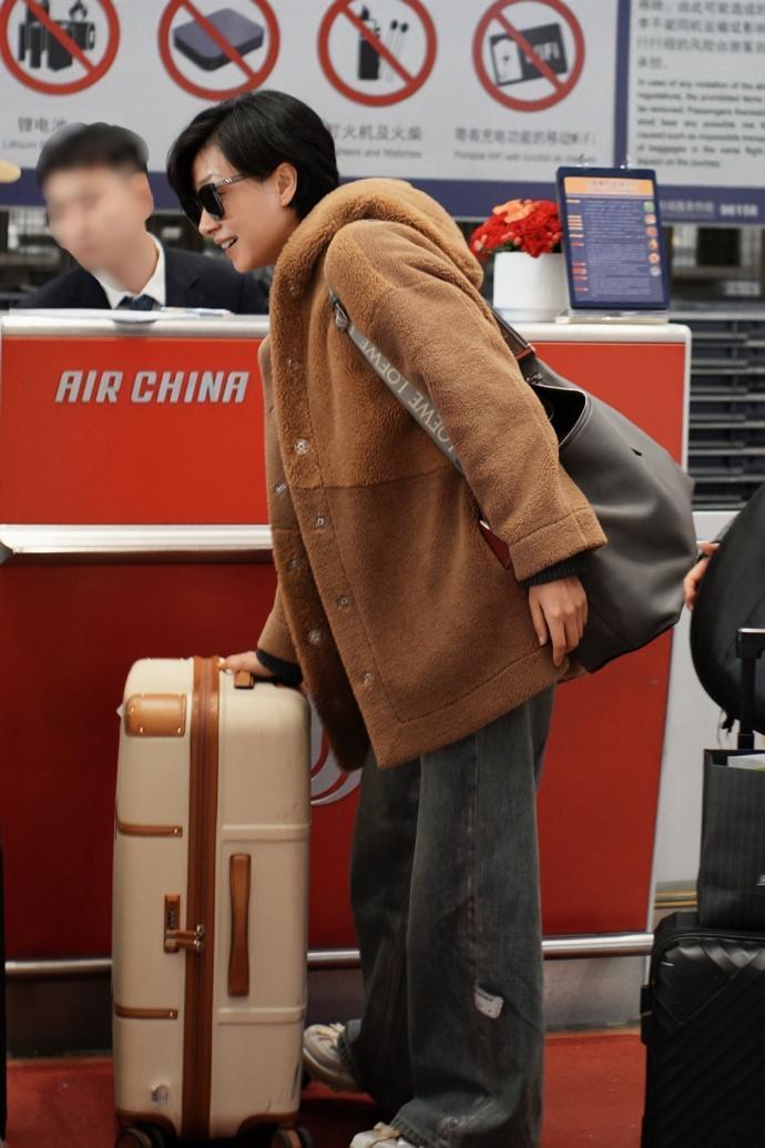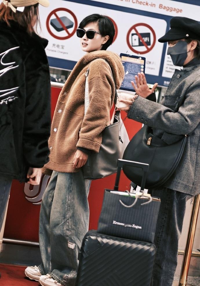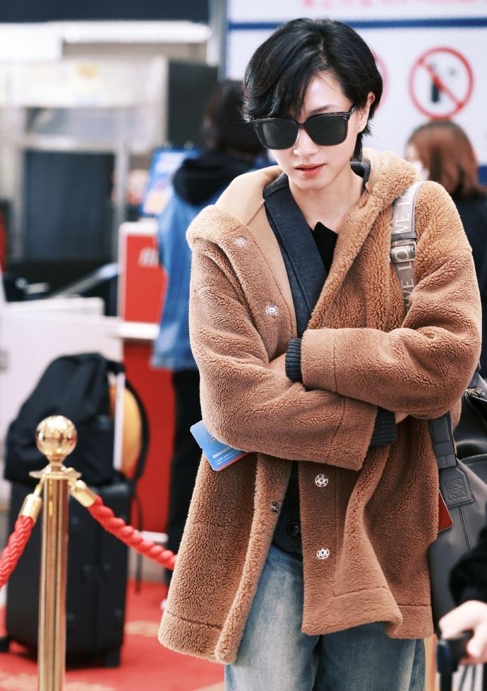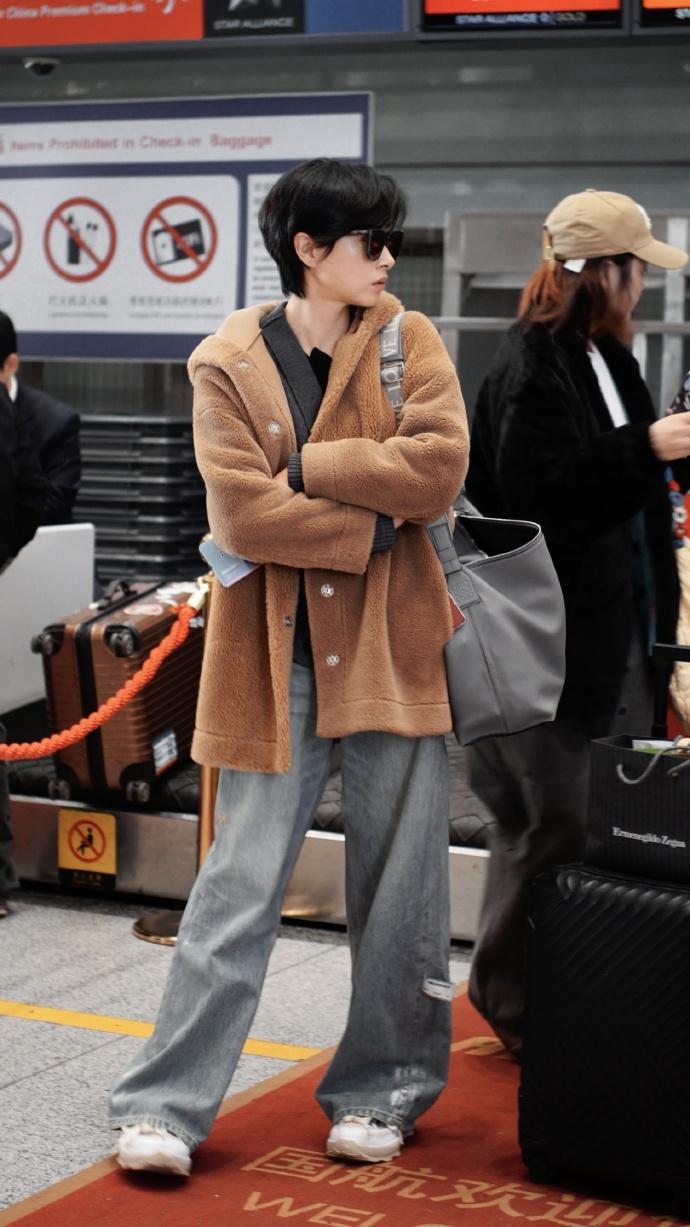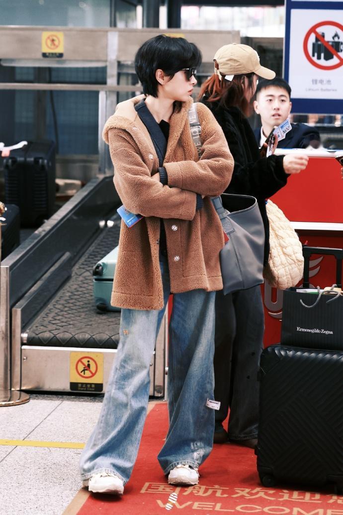 今天万茜现身机场,她这次搭配的潇洒又迷人,也很有高贵感,真的好美。 万茜里面穿深色针织衫,外面套装棕色的绒面大衣,两件衣服叠穿的效果很不错。 万茜下身穿做旧风格的牛仔裤,脚踩白色运动鞋,看起来很有活力之美。 她的身段极为苗条,这次搭配的很宽松,显得很有魅力。 万茜留着清新的短发,还戴着黑色的墨镜,确实是太拉风了,也很有大牌明星范儿。