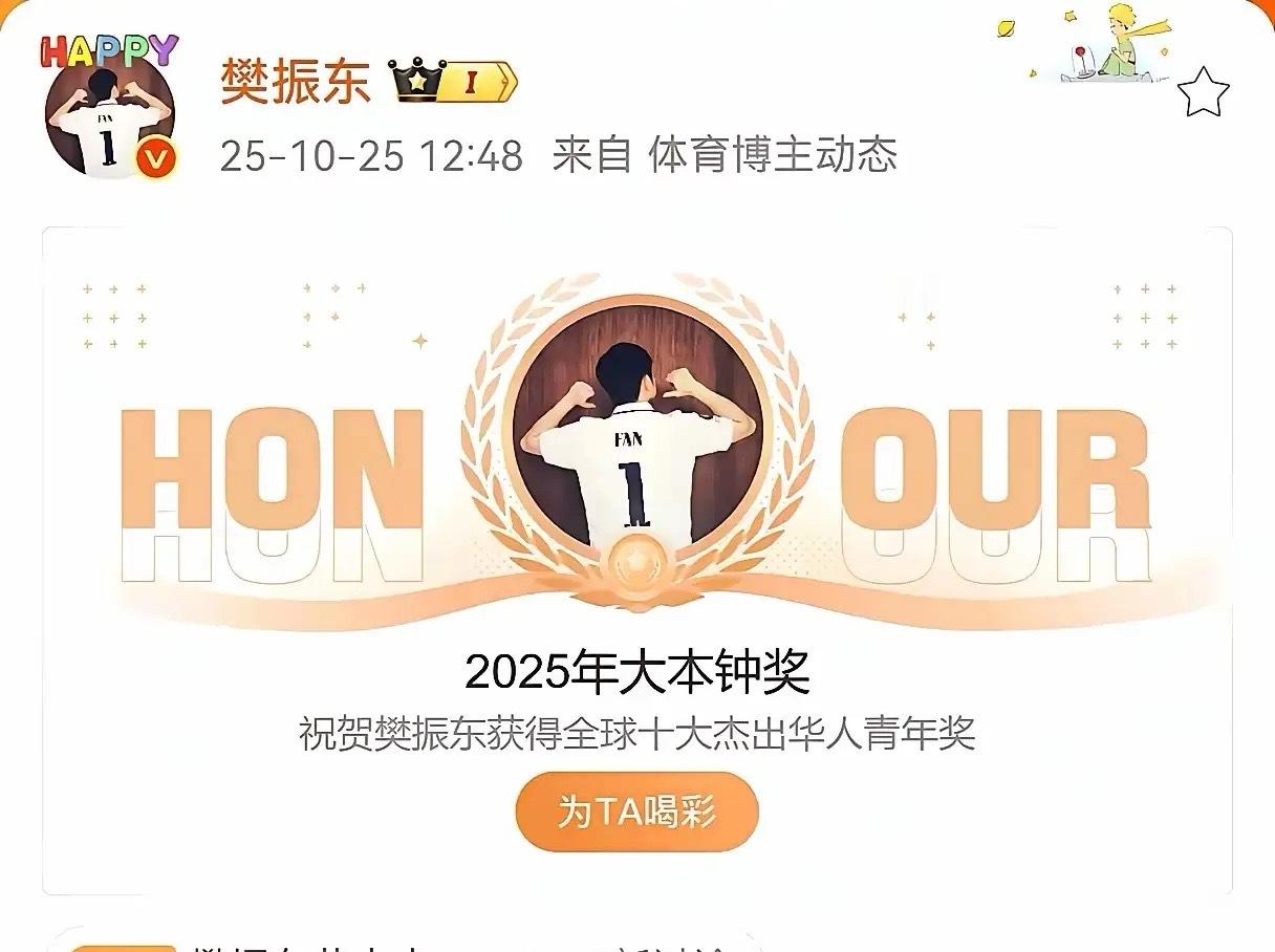 樊振东斩获大奖,吴敬平教练发文庆贺,引“但令毛羽在,何处不反飞”肯定爱徒实力。此奖含金量十足,全球仅十大杰出华人青年获奖,樊振东获全球认可。他一年多未参赛仍得殊荣,优秀有目共睹。全运会他重视且将参赛,代表上海队,定会全力以赴,樊振东加油! ​​​
