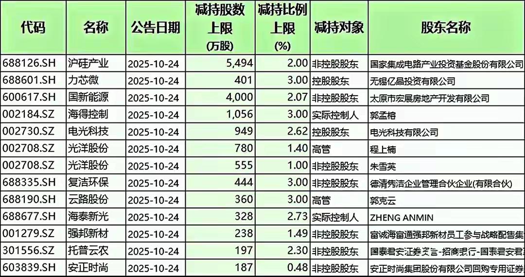 最新市场动态:半导体等科技板块成股东减持"重灾区",国家大基金罕见出手 最新统计显示,沪深两市已有102家上市公司披露股东减持计划,其中半导体、IT服务、医药生物及自动化设备四大行业成为减持高发区。值得市场高度关注的是,素有"国家队"之称的国家集成电路产业投资基金(简称"国家大基金")也现身减持名单,释放出行业资金动向的重要信号。 半导体产业链遭遇密集减持潮 在科技股调整压力下,半导体领域正面临多路资金同步撤离: - 芯片制造环节:燕东微(688172)遭国家大基金减持1428万股,这是该国家级基金年内首次公开披露对芯片企业的减持操作,引发市场对行业政策风向的关注; - 材料领域:沪硅产业(688126)被国泰君安旗下基金大手笔减持5494万股,作为国内半导体硅片龙头,其面临的资本退潮压力尤为显著; - 存储芯片赛道:聚辰股份(688123)遭遇武汉瑞穗基金减持412万股,反映存储芯片设计细分领域同样承受抛售压力。 市场分析指出,此次减持潮既包含机构正常的投资退出行为,也可能折射出部分资金对半导体行业周期性的审慎态度。国家大基金的动向尤其值得跟踪,其持仓变动往往被视为行业发展的风向标。后续需密切关注减持是否呈现扩散趋势,以及产业资本的后续动作。