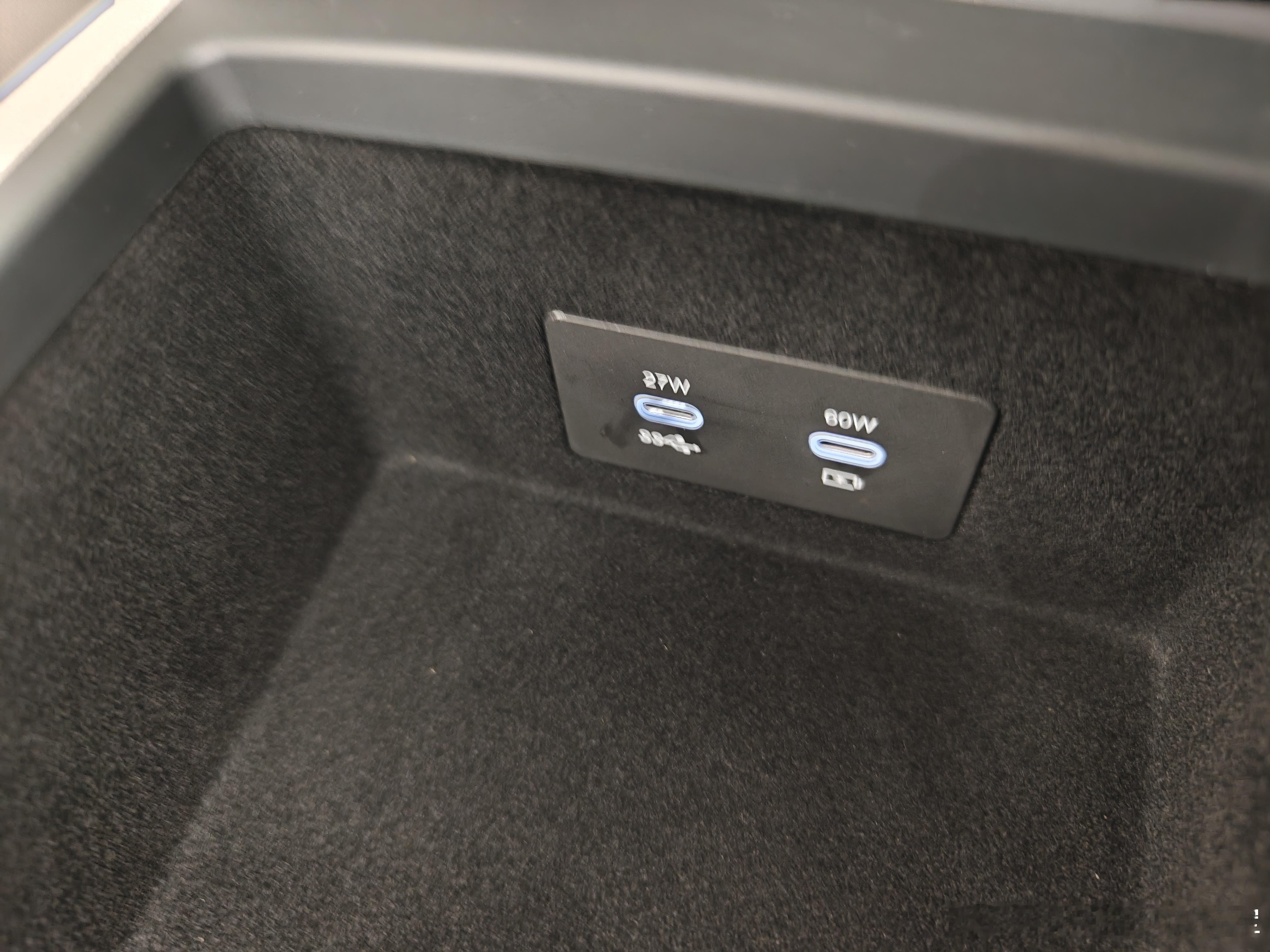 升级不仅仅止于座椅,车顶棚也把之前饱受诟病织物顶换成的麂皮绒,豪华感整体明显更上一层楼。还有一个小点必须说一下:前排扶手箱里面的usb接口终于把数据口和快充解绑了(图7),之前我的007就是快充口也是数据口,结果还需要这个拓展坞,这次7x把这个调换了一下,这样明显方便了很多的用户。