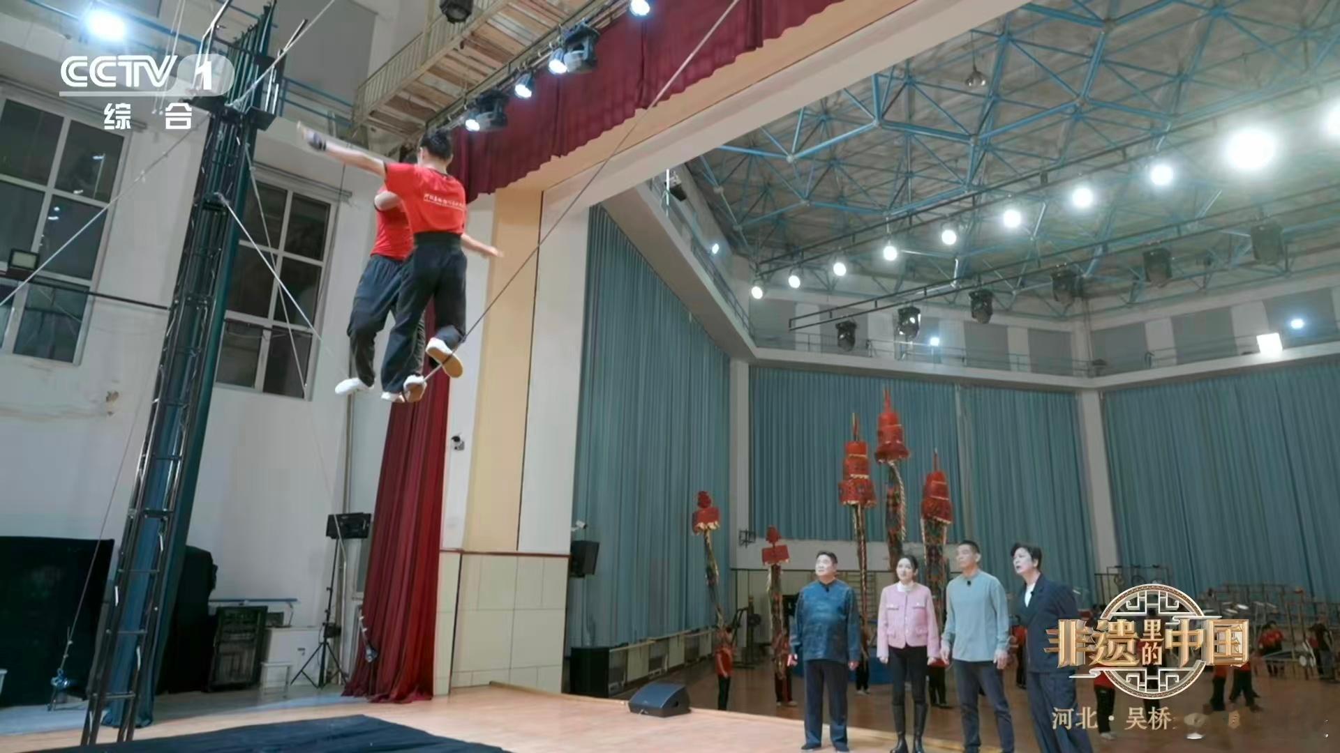 吴桥杂技成了科幻片 谁看吴桥杂技这高空走钢丝不攥紧手心啊!演员踩在只有 8 毫米粗的软钢丝上做动作,底下观众估计眼睛都不敢眨,心跟着悬到嗓子眼,这份紧张感隔着屏幕都能扎进来,太绝了!
