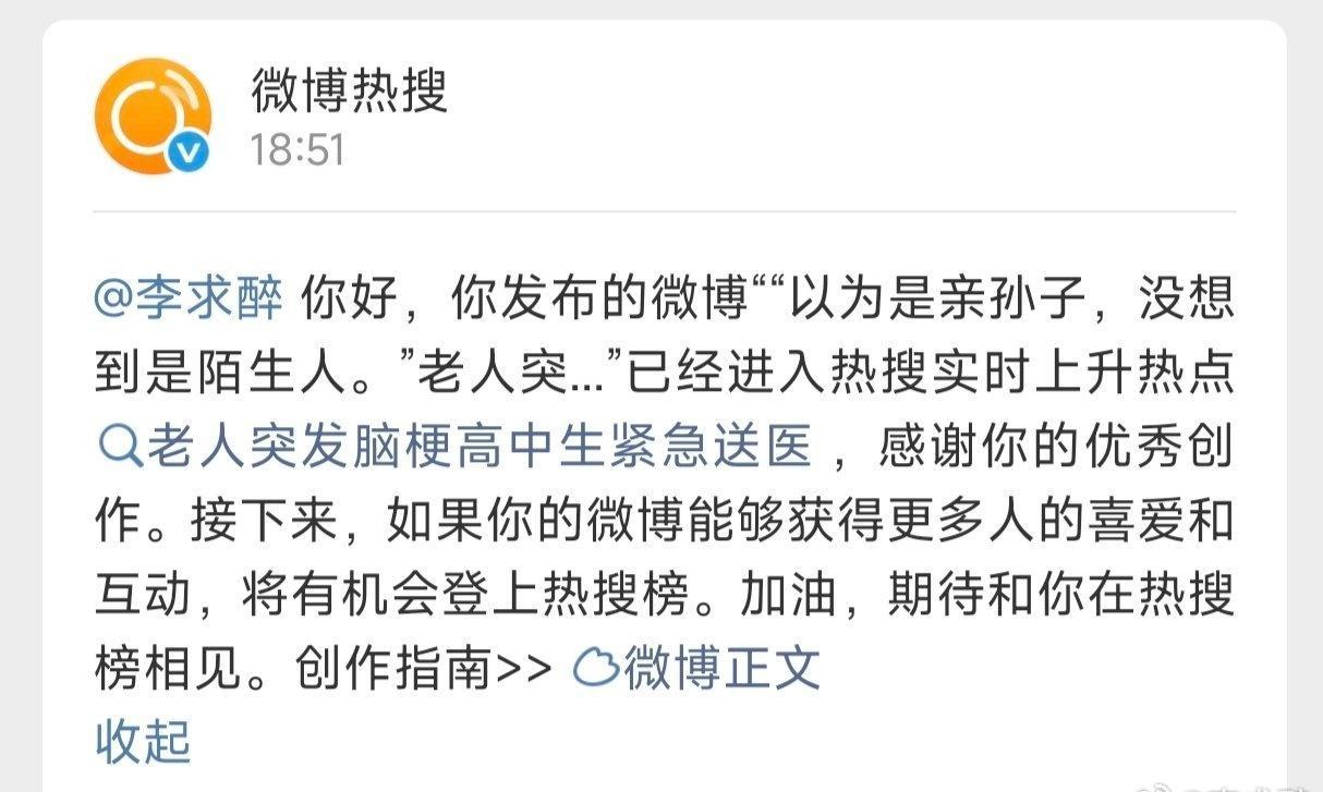 老人突发脑梗高中生紧急送医微博,就让我上回热搜吧