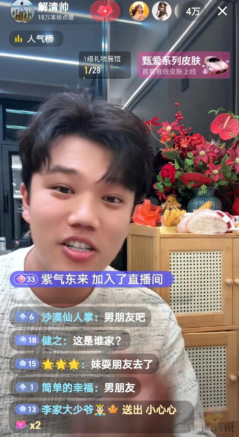 解清帅真的太牛了, 这次直播人气瞬间进来4万人观看, 解清帅说,最近为什么没有给大家拍视频,直播, 因为结完婚得串新门,回娘家了, 那边亲人太多了,而且都是第一次见不好意思, 以后会给大家看的, 然而解清帅说,这次在他的妈妈家直播, 也是结完婚后第一次聚餐,全家人都齐了,大哥大嫂,都在,梁静,梁雯都在,