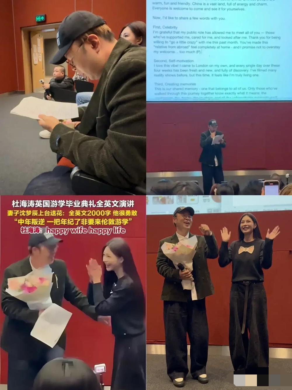 谁懂啊!沈梦辰躲被窝笑出声,杜海涛伦敦演讲帅到让人破防 这一夜刷到杜海涛的演讲视频,瞬间懂了沈梦辰躲在被窝里笑出声的心情,37岁的他,也太让人惊喜了! 这次在伦敦大学的演讲,他全程没靠翻译,用英文讲完2000多字内容,一站就是40多分钟,台下掌声就没断过。镜头里的他戴着鸭舌帽、穿一身休闲装,握着稿子从容又自信,完全没有以往综艺里的松弛感,满是认真发光的样子。 好多人觉得37岁该求稳,可杜海涛偏不躺平,还敢挑战全英文演讲这种“硬骨头”。比起“年少轻狂”,这种年纪里仍敢追新的勇气,才更难得。沈梦辰哪是爱对了人,是爱对了一个永远保持向上劲儿的人。 你刷到杜海涛的演讲片段了吗?你觉得他这次最圈粉的是英文能力,还是这份不服输的劲儿?来评论区聊聊~