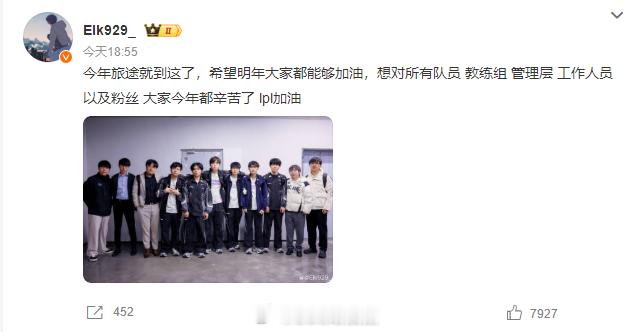 Elk发博称今年大家都辛苦了Elk今年大家都辛苦了