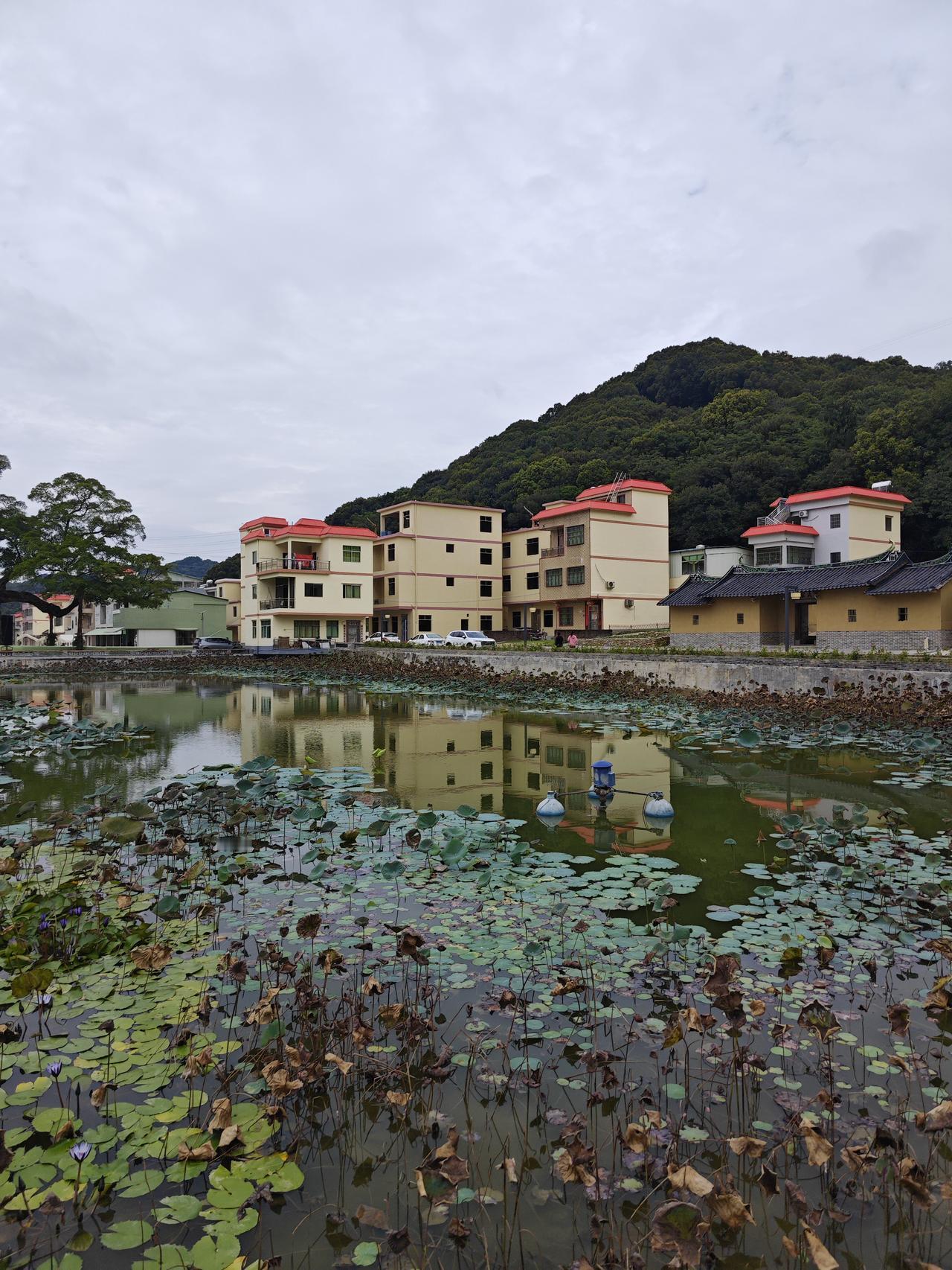 这是广东省山区最典型的乡村田园风光,村子里面一定有祠堂,祠堂前面一定有池塘,池塘里面一定有荷花。现在荷花已谢,荷叶凋零,如果来一场细雨,就有枯荷听雨的味道。离开乡村时间太长了,回到乡村,闻到了泥土的清香,很想停下脚步,在这些村子里住上一段时间。田园诗意风景