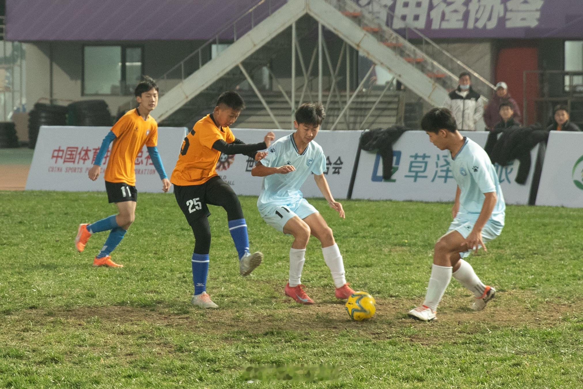 开幕式后又在现场解说了一场比赛。天气很冷,但人们对足球的热情不减。