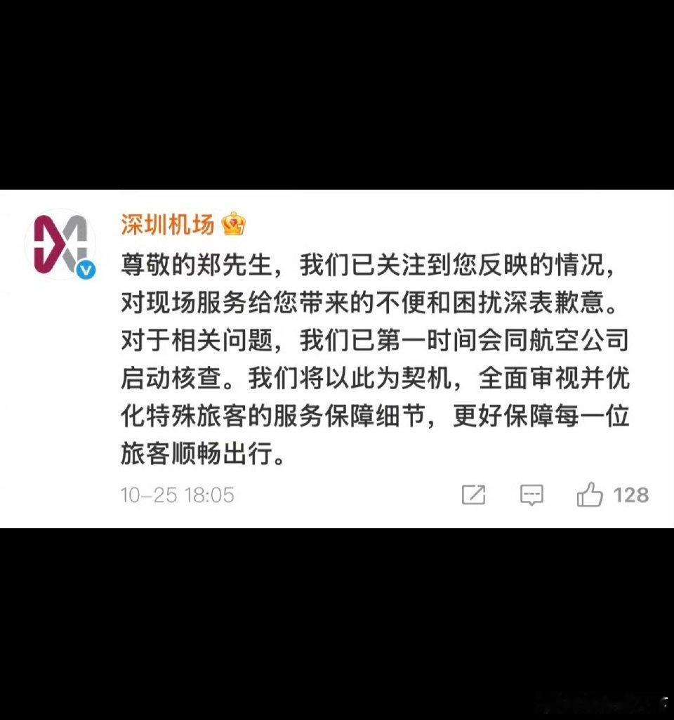 深圳机场回应郑智化吐槽机场服务