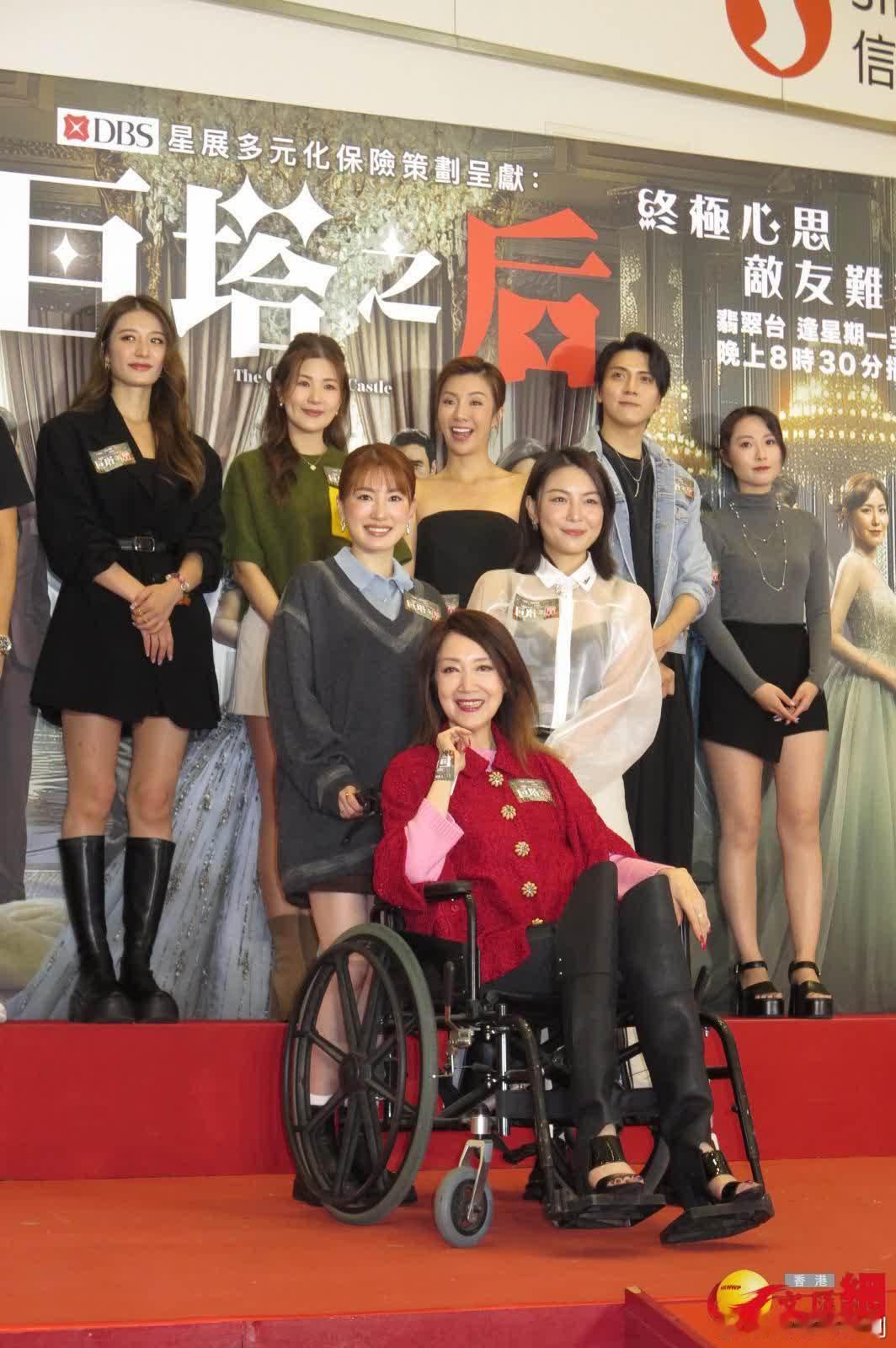香港文匯報訊(記者 阿祖)無綫台慶劇《巨塔之后》進入結局篇,今日宣傳活動上,總監製鍾澍佳因腳傷撐着拐杖出席,演員宣萱、陳煒、馬國明、陳展鵬、劉佩玥、湯鎮業及蔣家旻等參與。活動上,蔣家旻與尹詩沛按劇情推着坐輪椅的謝雪心出場;而陳煒劇透自己生病返醫院睇醫生,現場即被問是找「董醫生」(宣萱)還是「陳醫生」(陳煒老公),陳煒忍不住狂笑;宣萱更公開大讚陳展鵬於結局篇展示演技爭視帝,會上亦公布劇集於內地平台破2億播放。