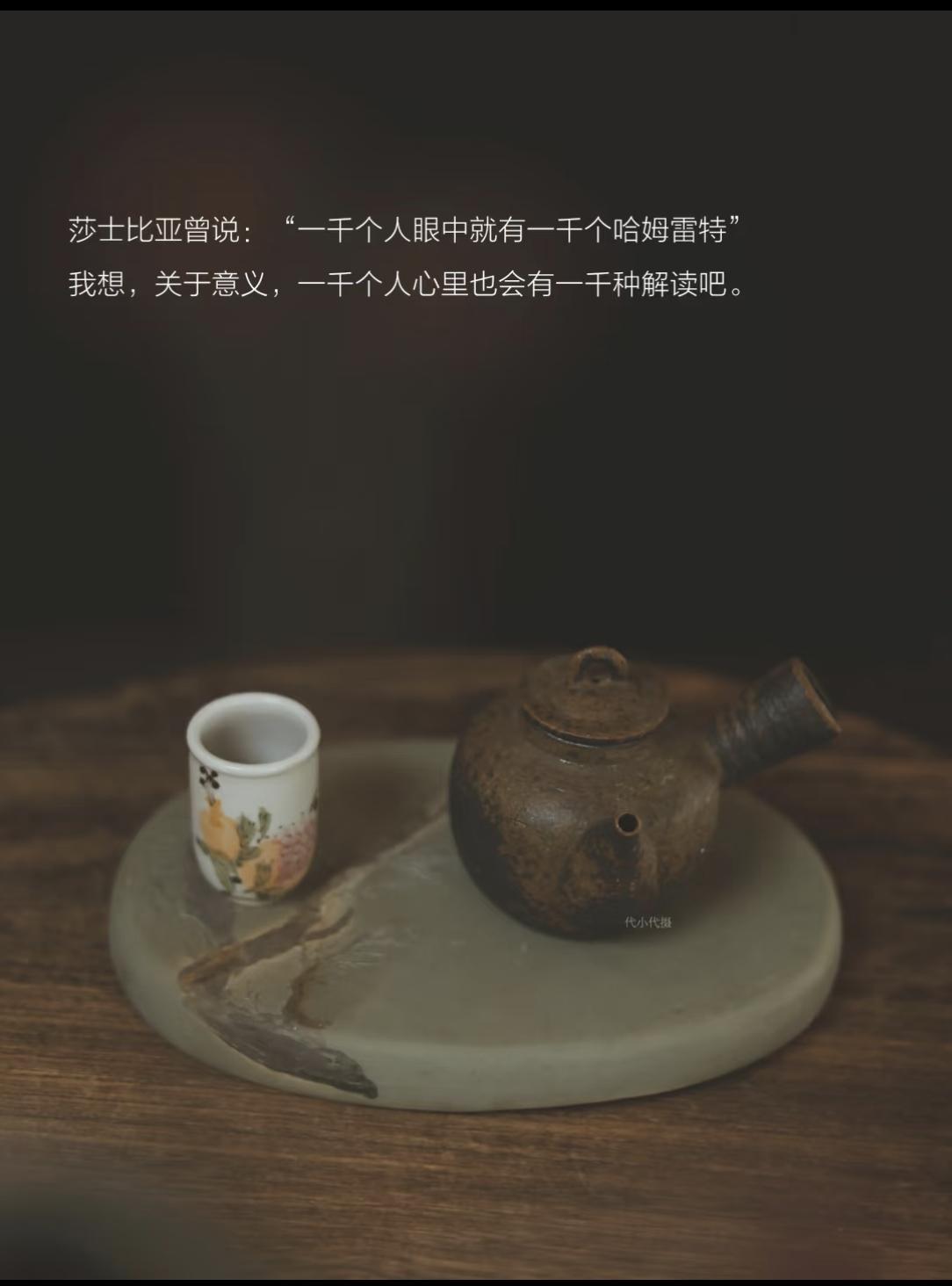 刘震云曾一语道破人生意义的真谛:“穷人追求的是美食;富人追求的是美女;诗人追求的是美景;商人追求的是暴利;工人追求的是高薪;匠人追求的是杰作;僧人追求的是永生;道人追求的是成仙;圣人追求的是功德。人生就是一场体验,各有各的活法,酸甜苦辣,都是生活。” 所以,人生只是一场体验。这场体验的意义在于你定的“小目标”。正所谓萝卜白菜,各有所爱。有的人认为小富即安,有人追求大富大 ; 有的人觉得平平淡淡才是真,有的人渴望一览众山小。 而回归到普通人身上,只要弄明白我要怎么活才舒坦就是最大的意义。每天做好手头的事情,平衡好家庭和工作,一日三餐吃好睡香,把日子过顺就是一种成功。 生活本没有固定的剧本,只要活的舒心,过的踏实就是最好的人生。 ------------------------------------ 点个赞+小评一下,愿人生的旅途从容洒脱,不慌不忙; 关注我+收藏一下,愿岁月的长河浅笑安然,细水长流。 秋日生活打卡季 万能生活指南