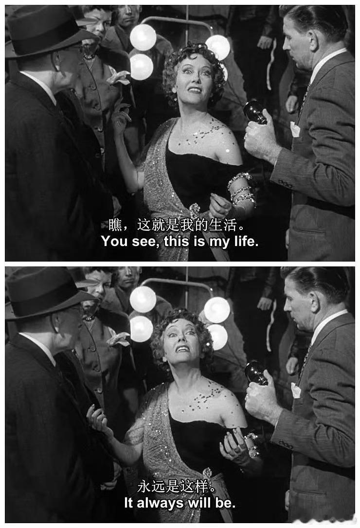 诺玛和马克斯的哭泣同时也是比利·怀尔德的感怀,经过乔治·梅里爱、埃德·温鲍特、大卫·格里菲斯、谢尔盖·爱森斯坦等大师的革新,电影从影像变成了艺术,也推进了好莱坞的发展。