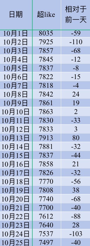 昨天的超喜欢和今天超喜欢底数下降了 昨天的发帖人数上升了