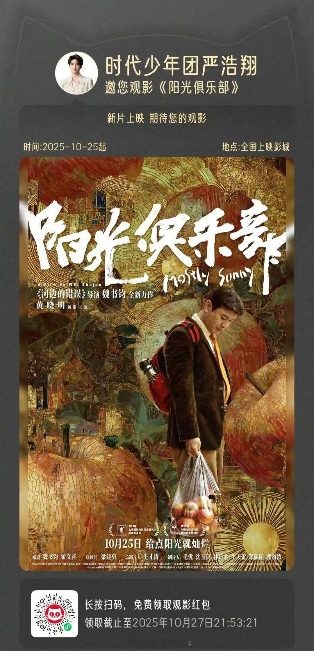 严浩翔包场了黄晓明电影《阳光俱乐部》,这两位怎么认识的呀[拜托]