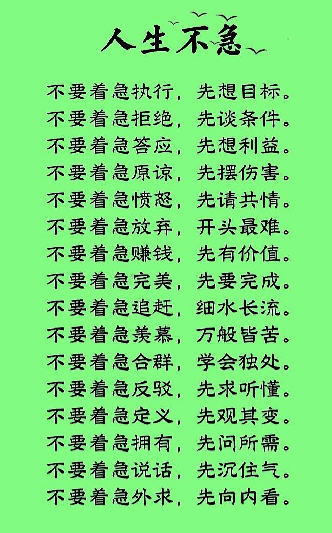 人生4贵: 沉得住气 弯得下腰 抬得起头 静得下心