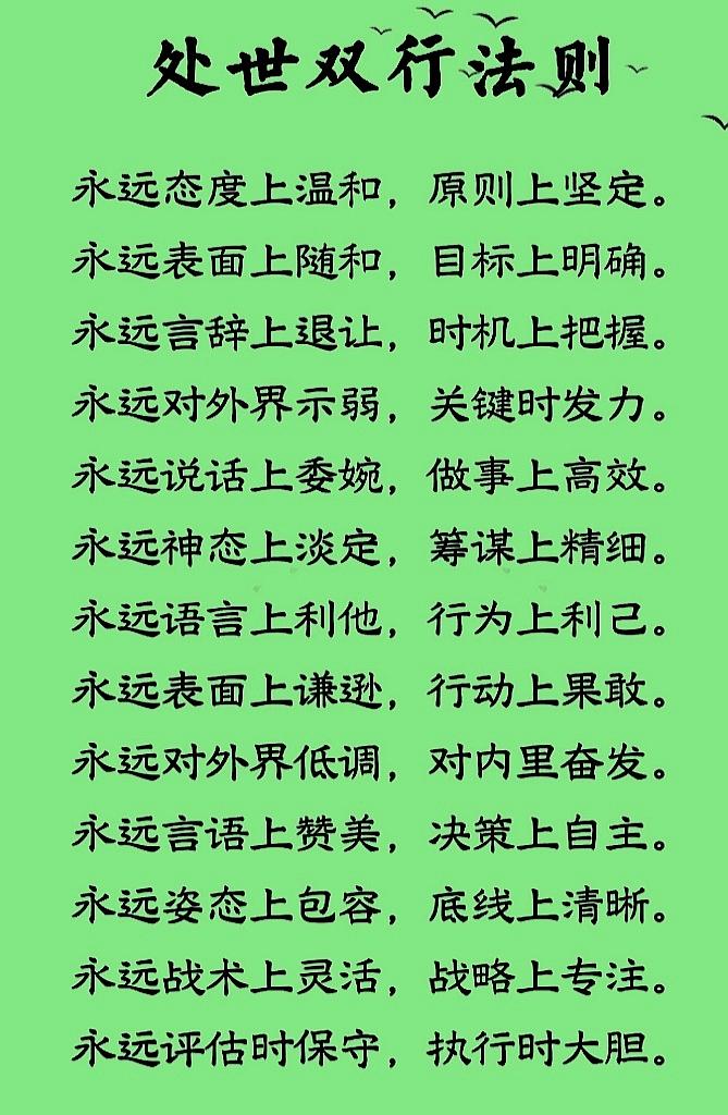 事不可做尽 话不能说绝 锋芒要收敛 低调才长远