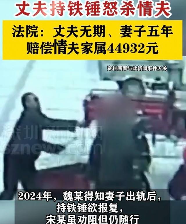 自古奸情出人命!湖北咸宁,妻子背着丈夫出轨情夫6年。6年后,丈夫从妻子口中得知她是被胁迫的,遂怒不可遏,操起铁锤在妻子的引导下找到情夫,随即将情夫锤杀致死。事后,夫妻二人双双获刑,如何评价此案? 据深圳新闻网10月19日报道,湖北咸宁发生了一起引发广泛关注的血案,案件的主角是一对夫妻:丈夫魏某因持铁锤杀害妻子情人被判无期徒刑,而妻子宋某则因故意伤害罪获刑五年。 2007年,宋某通过亲戚的介绍嫁给了魏某,二人婚后过上了平静而幸福的生活,他们有了孩子,家庭看起来和谐美满,但这一切的表面繁华,却在2018年开始发生了变化。 那一年,宋某背叛了她的丈夫,开始了一段婚外情,她与彭某的关系持续了整整六年,在这段关系中,宋某曾多次选择忽视自己的责任,沉浸在背叛带来的刺激与满足感中。 2024年,魏某终于发现了这段长达六年的婚外情,面对丈夫的质问,宋某的第一反应并不是坦诚,而是急于为自己辩解,她选择了用一个“受害者”的身份,来掩饰自己的过错,声称自己是被彭某胁迫的。 魏某情绪瞬间爆发,暴怒的他拿起家中的铁锤,冲向了情人彭某,面对丈夫的暴力行为,宋某并没有做出立即的反应,虽然口头上劝说魏某冷静,不要做傻事,但她没有出手阻止,也没有及时报警。 相反,她选择跟随魏某,并指引他去彭某的工作地点,这一步,实际上成了悲剧的导火索,宋某的“引路”行为,直接促成了暴力的发生。 宋某就站在一旁,看着眼前的惨状,虽然她嘴上说着让魏某冷静下来,但她并没有采取实际行动去阻止丈夫的暴力行为,彭某被魏某用铁锤击倒,倒在地上血流如注,她才赶紧报警。 她的行为,从某种程度上证实了,她并没有将这场冲突,看作是一个可以通过理智和法律解决的问题,而是选择了让事情更加激化。 法庭审理过程中,魏某的犯罪行为被认定为故意杀人,他的杀人意图非常明确,铁锤直接击打彭某的头部和要害部位,杀人动机毫不含糊,因此他被判处无期徒刑。 而宋某则被认定为故意伤害罪的帮助犯,虽然她的“引路”行为促成了案件的发生,但法院认为,她的主观意图并不是要让丈夫杀死彭某,而只是想让他去“教训”一下情人,因此宋某只被判五年。 宋某的选择,不仅毁掉了魏某的未来,也摧毁了她自己和孩子们的生活,她本可以通过离婚等合法手段来解决婚姻问题,但她选择了一条更加极端的道路,让原本可能得到和平解决的问题,变成了无法回头的悲剧。 她在这场情感危机中的参与,使她最终成为了丈夫犯罪的帮手,也让她自己陷入了无法逃脱的法律制裁。