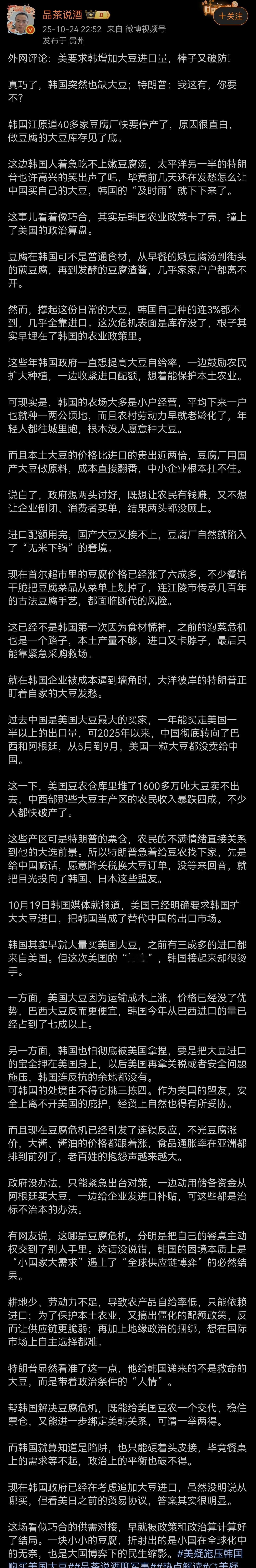 韩国SBS:美国要求韩国购买大豆,作为两国资金谈判的前置条件!报道一出,评论