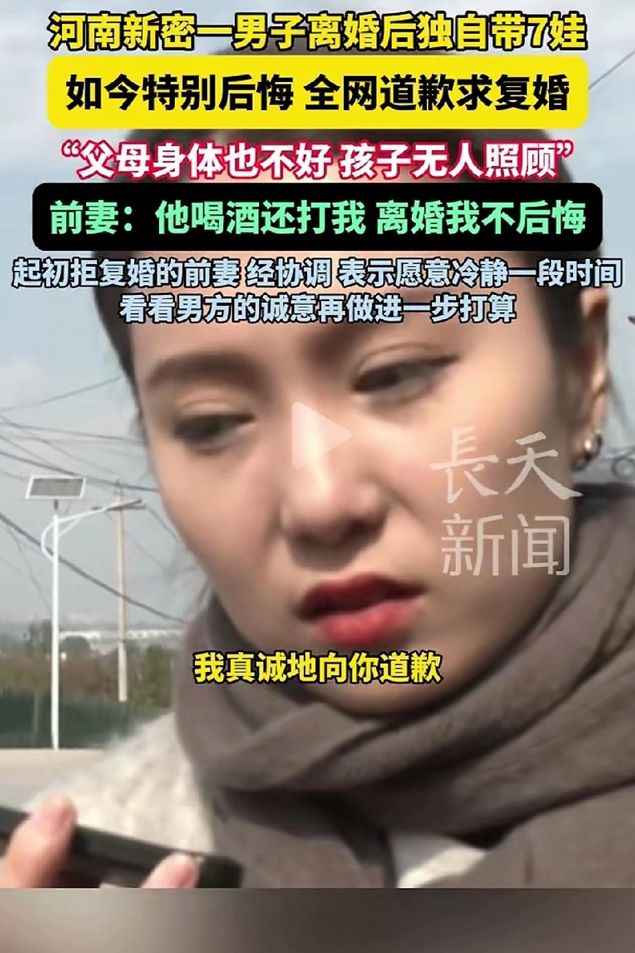 河南新密男子离婚后独自带着7个孩子,如今特别后悔全网道歉求复婚,男子喝酒动手打了前妻,因此让前妻伤透了心,就算离婚也不后悔,男子是因为家中无人照顾的那7个孩子和身体带病的父母才求复婚,而不是因为失去一个真心为家付出的女人感到后悔,没有诚意的道歉会感动前妻吗? 男子并没有体会到带7个孩子的劳累,平日的吃喝拉撒洗衣做饭打扫卫生还得照顾两老人都是前妻的活,说白了是妻子其实就是一个全职保姆,竟敢打人还敢离婚,没有哪个女人敢接这么大的任务,猜测男子离婚才体会到了以前没体会到的过日子的这些琐事,他的道歉令人反思,前妻会为他的道歉而复合吗?