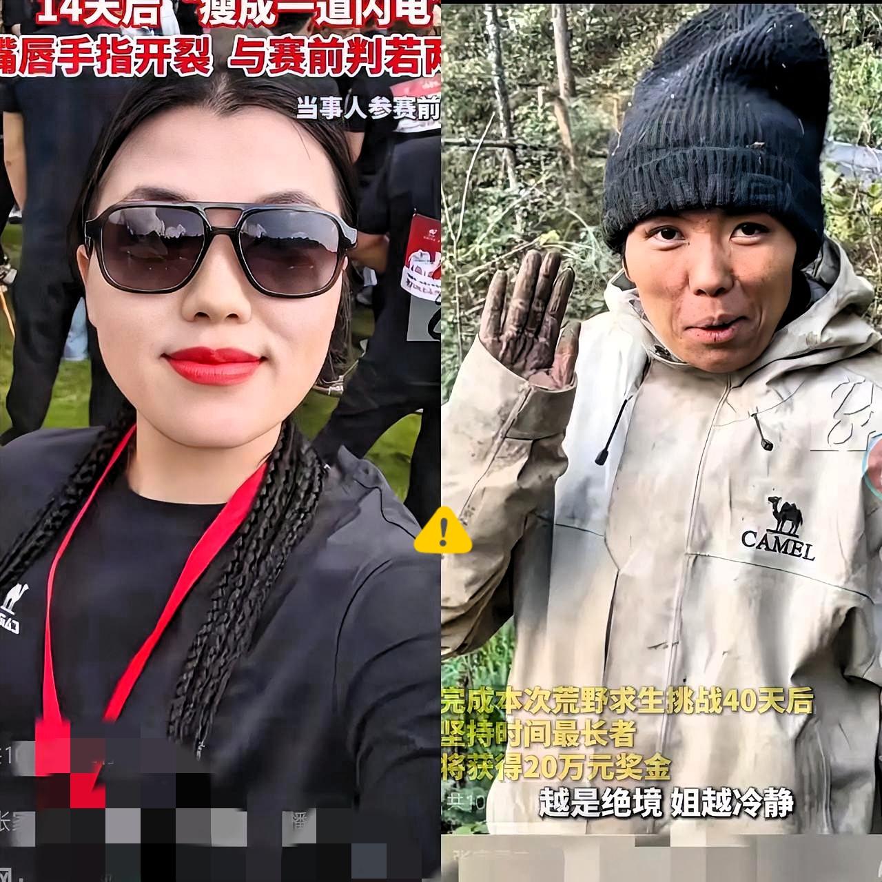 荒野求生:奖金与磨难的博弈 为20万奖金,一位女子投身湖南荒野求生挑战,成为100人中唯一女性。14天过去,她瘦成一道闪电,嘴唇手指裂开,模样令人心疼。截至10月24日,仍有25人在这场艰难挑战中坚持。 这场挑战规则残酷,仅凭一把柴刀,参与者要在荒野中生存,直至最后一人赢得20万奖金。女子为奖金拼尽全力,荒野的恶劣环境却毫不留情,将她折磨得憔悴不堪。 网友的调侃虽带玩笑意味,却也反映出荒野求生的残酷现实。在生存面前,美貌与性别都无优势可言,唯有顽强的意志和生存技能才是关键。这25位仍在坚持的挑战者,无论最终能否捧得奖金,他们挑战自我、突破极限的精神都值得敬佩。这场荒野求生,不仅是奖金的争夺,更是对人类生存能力的深度考验。