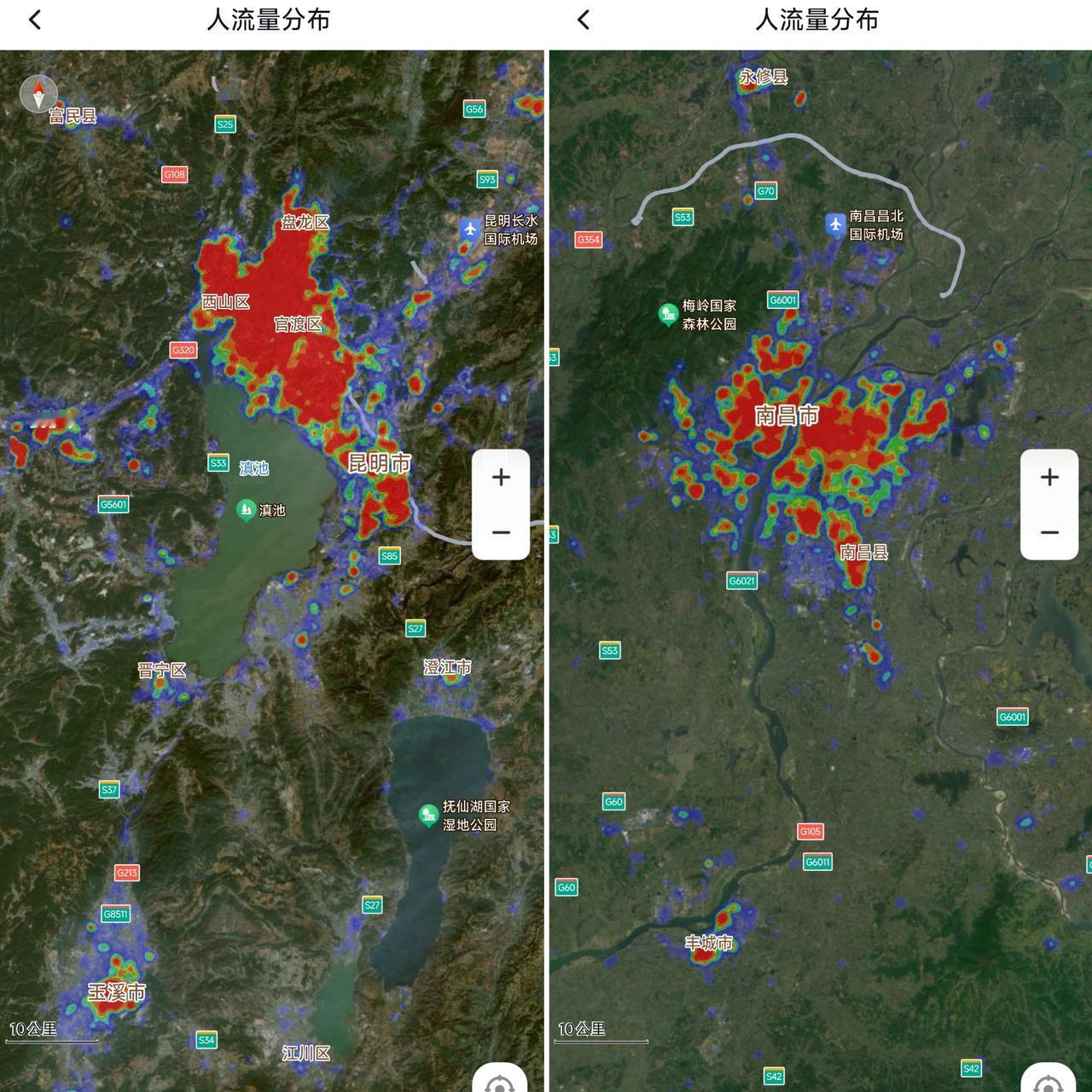 从城市热力图看昆明市区确实比南昌繁华很多,红色区域面积的对比更是可以直观地展示这两座城市的差距,更关键的是昆明常住人口数量也比南昌多了好几百万。 可是让人疑惑不解的是为何地铁客流量昆明就没有南昌高呢?毕竟昆明作为旅游城市外地人数量更多。只可惜目前南昌单日的地铁客流量可以很轻松地达到100万以上,昆明只有70万左右,因此看到这样的场景难免有些百思不得其解。