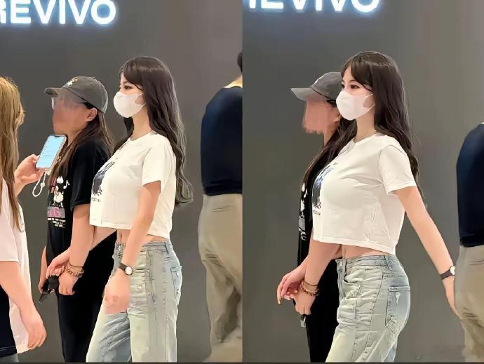 张天爱跟素人合影,胯真的好宽,大宅院似的
