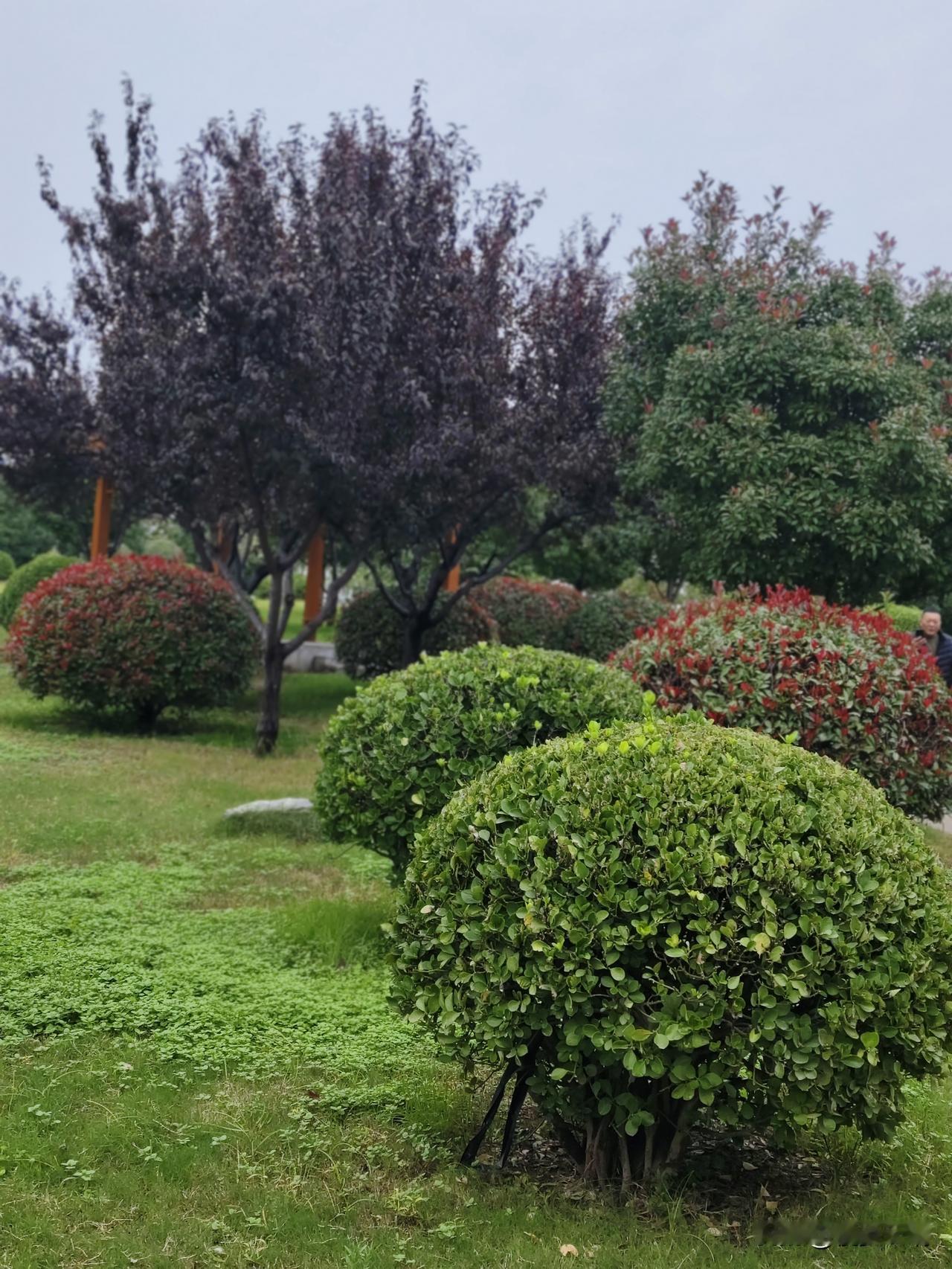 园中之韵 漫步于这座公园的一隅,满目皆是自然晕染的生机画卷。 那几株紫叶李傲然挺立,深紫色的叶片如精致的绒缎,在微风中轻轻颤动,似在低语着季节的密语。不远处,几团红叶石楠如燃烧的云霞,新叶的艳红与老叶的深绿交织,像是大自然打翻了调色盘,将热烈与沉静揉进同一簇枝桠。 近处的冬青球则是另一种韵致,圆润的树冠如精心雕琢的绿玉,每片叶子都饱满鲜亮,在微光下泛着柔和的光泽,仿佛岁月在这里都放慢了脚步,只余下静谧的生长。脚下的草地混着三叶草,深浅绿意层层叠叠,似大地织就的绒毯,承载着所有草木的呼吸。 偶尔有微风掠过,树叶沙沙作响,惊飞了草间小虫。远处木质廊架的轮廓在树影中若隐若现,更添了几分清幽。这一方小园,没有浓墨重彩的刻意,却以草木的自然姿态,将平淡的时光晕染成诗,让每个驻足的人,都能在绿意与色彩的交响里,听见心底最温柔的回响。