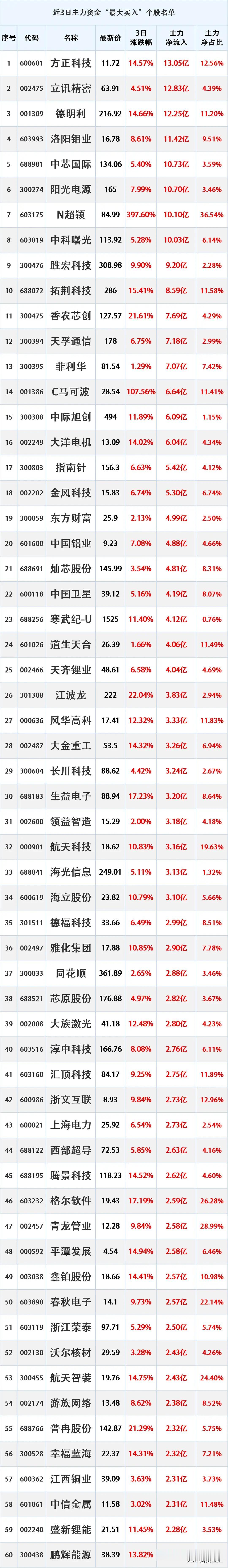 近三日,主力资金大幅流入的股票名单。 资金流入是指在一定时期内(如一天、一周等),主动买入某只股票的资金量大于主动卖出该股票的资金量。主动买入是指投资者以卖方的报价直接成交,显示出投资者对该股票的积极购买意愿。