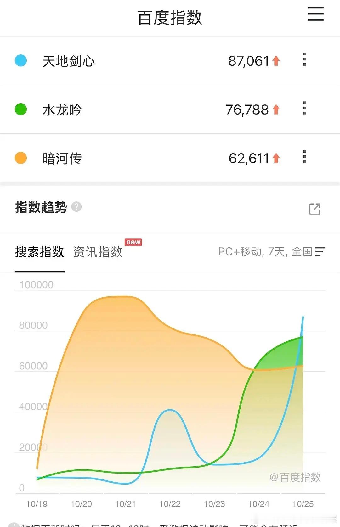 10.25《天地剑心》百指87000,分城正常,抖指400万,这个热度很不错啊,而且最让我通体舒畅的是,这一回戏外也安稳,不再折腾成毅了,今天我就要看这部剧了,请问要注意啥?一天全部看完
