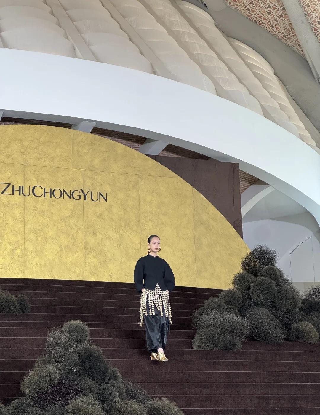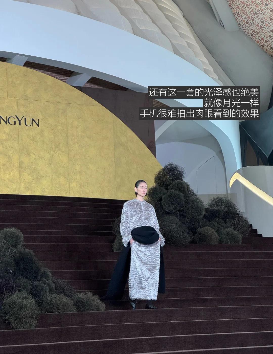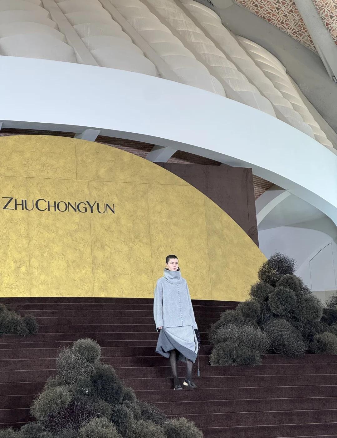 ZhuChongYun,看见月亮的另一面 最早了解到ZhuChongYun,是2024年的「苗」系列。作为一个创意行业的文字工作者,我一直很关注不同品牌对于东方文化的表达,「苗境」系列让我眼前一亮。 它的关注点不再是具象甚至cliché的符号,而是从自然地理的文化源生地出发,让设计成为辅助其自然生长出现代性的手段。符号被适当地隐藏,由更深层文化衍生出的廓形和剪裁工艺占据观者视觉的首位,使得它不再是一种平行的文化移植与挪用,生命力显而易见。 收到品牌的邀请,来到深圳观看ZhuChongYun 2025冬季系列的发布,秀上让我印象最深刻的元素有两个:一是极其轻柔、随模特走动而颤动的成簇线性羽毛(图4-6),二是藏在裙摆或上衣下摆的淡金色圆形「流苏」(图7-9)。 在ZhuChongYun一向大气、简洁的廓形的映衬下,这两个元素是细腻而克制的浪漫:前者像是每每抬头望月时,月光带给你的心理「触」感;后者则代表一种微妙的动势,既试图留住月圆时的完满,又不忍心将圆月锁住不动、占为己有。 本季的主题是「但愿人长久」,我觉得比起真正的长久,我更在意的是那个「愿」字。它不去「控制」结果,而仅代表心向的念想。 秀场上还有一个细节是一套全身浅灰的Look,模特在展示时特地将裙摆撩起,露出里面深灰色的内层(图10-11),它让我想到我大学时读过的列维斯特劳斯文集《月亮的另一面》,由此也让我联想起东西方对「月亮」这个元素的不同创作表达。 人类历史上的第一部电影《月球旅行记》讲述了一群科学家登月的故事,它的代表视觉符号,那个被大炮戳中的月亮是一个满月,是一种很现代科学、唯物主义式的「所有权宣誓」,西方文化所看中的月亮是可见、可占有的。 但东方文化完全不同,东方看到的是月的阴晴圆缺、虚实流转,看得到月亮那「不可见」的另一面。《诗经》中讲「如月之恒」所代表的也并非物质层面的拥有,而是在意对人的内心的影响、将人之所「愿」投向夜空。 整场秀看下来,我觉得这个精髓,被设计师抓住了。这是一种东方式的大美不言,于自然间自得其道。 zhuchongyun 25fw 秀场 ZHUCHONGYUN冬季时装秀 大美不言 极简东方 但愿人长久 时装周群聊 RedFaceOfFashion100