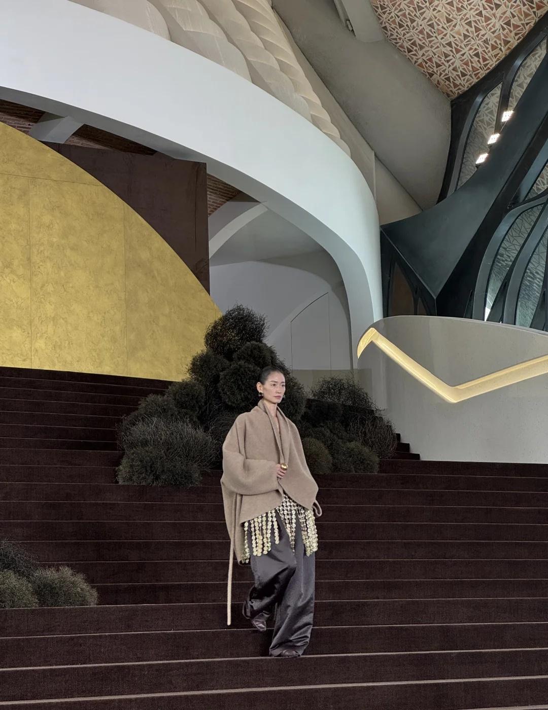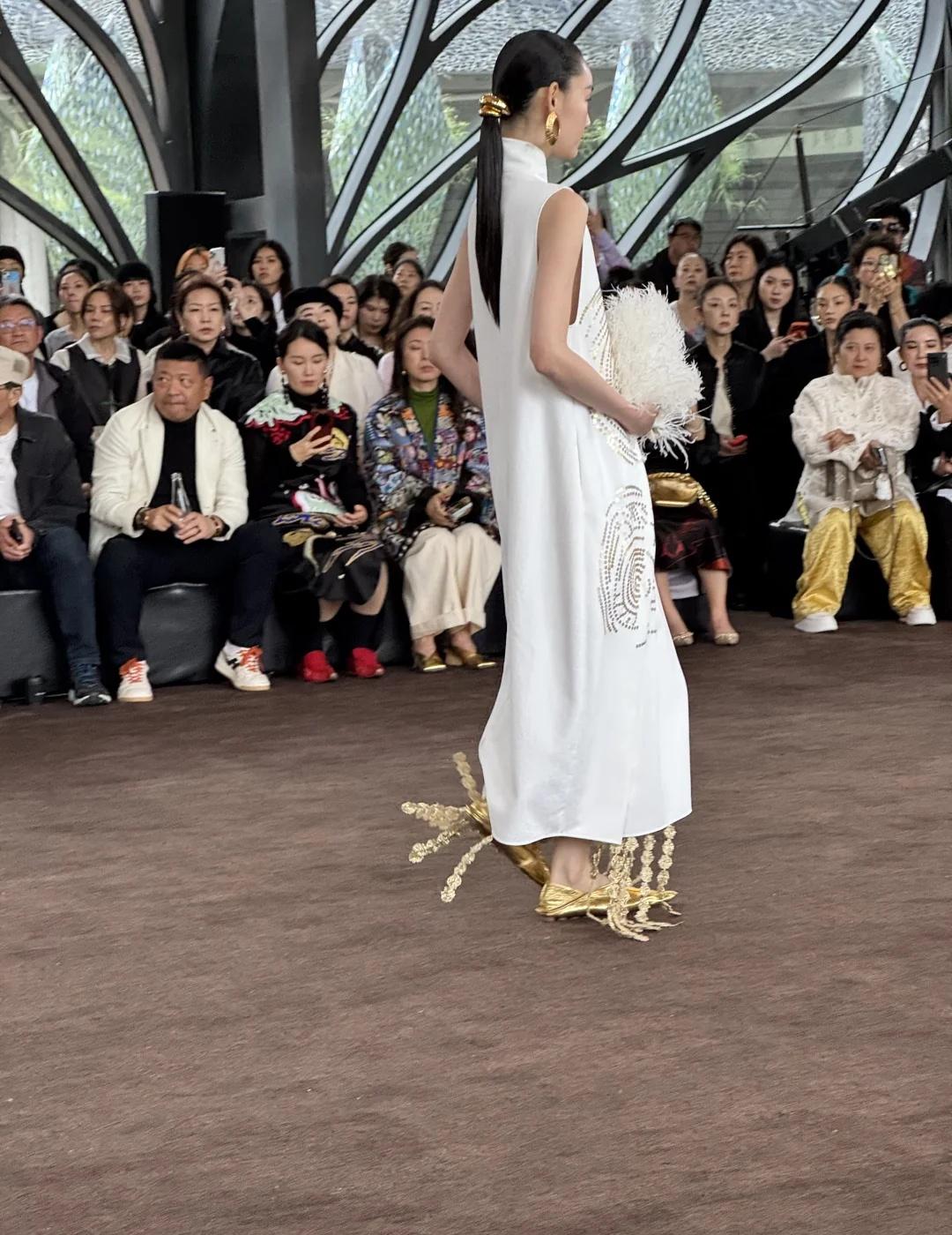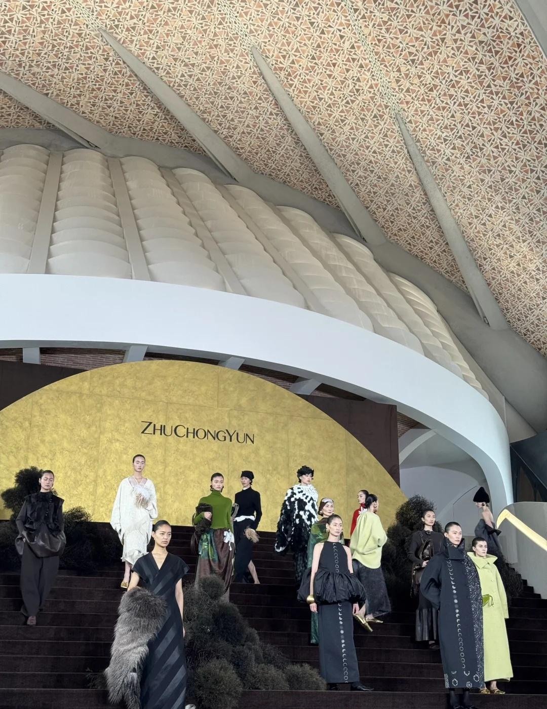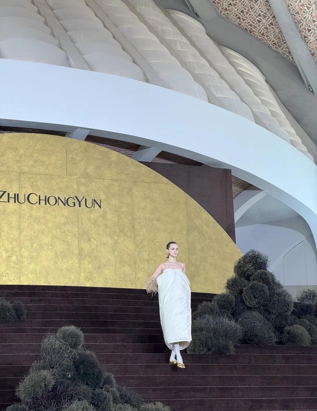 ZhuChongYun,看见月亮的另一面 最早了解到ZhuChongYun,是2024年的「苗」系列。作为一个创意行业的文字工作者,我一直很关注不同品牌对于东方文化的表达,「苗境」系列让我眼前一亮。 它的关注点不再是具象甚至cliché的符号,而是从自然地理的文化源生地出发,让设计成为辅助其自然生长出现代性的手段。符号被适当地隐藏,由更深层文化衍生出的廓形和剪裁工艺占据观者视觉的首位,使得它不再是一种平行的文化移植与挪用,生命力显而易见。 收到品牌的邀请,来到深圳观看ZhuChongYun 2025冬季系列的发布,秀上让我印象最深刻的元素有两个:一是极其轻柔、随模特走动而颤动的成簇线性羽毛(图4-6),二是藏在裙摆或上衣下摆的淡金色圆形「流苏」(图7-9)。 在ZhuChongYun一向大气、简洁的廓形的映衬下,这两个元素是细腻而克制的浪漫:前者像是每每抬头望月时,月光带给你的心理「触」感;后者则代表一种微妙的动势,既试图留住月圆时的完满,又不忍心将圆月锁住不动、占为己有。 本季的主题是「但愿人长久」,我觉得比起真正的长久,我更在意的是那个「愿」字。它不去「控制」结果,而仅代表心向的念想。 秀场上还有一个细节是一套全身浅灰的Look,模特在展示时特地将裙摆撩起,露出里面深灰色的内层(图10-11),它让我想到我大学时读过的列维斯特劳斯文集《月亮的另一面》,由此也让我联想起东西方对「月亮」这个元素的不同创作表达。 人类历史上的第一部电影《月球旅行记》讲述了一群科学家登月的故事,它的代表视觉符号,那个被大炮戳中的月亮是一个满月,是一种很现代科学、唯物主义式的「所有权宣誓」,西方文化所看中的月亮是可见、可占有的。 但东方文化完全不同,东方看到的是月的阴晴圆缺、虚实流转,看得到月亮那「不可见」的另一面。《诗经》中讲「如月之恒」所代表的也并非物质层面的拥有,而是在意对人的内心的影响、将人之所「愿」投向夜空。 整场秀看下来,我觉得这个精髓,被设计师抓住了。这是一种东方式的大美不言,于自然间自得其道。 zhuchongyun 25fw 秀场 ZHUCHONGYUN冬季时装秀 大美不言 极简东方 但愿人长久 时装周群聊 RedFaceOfFashion100