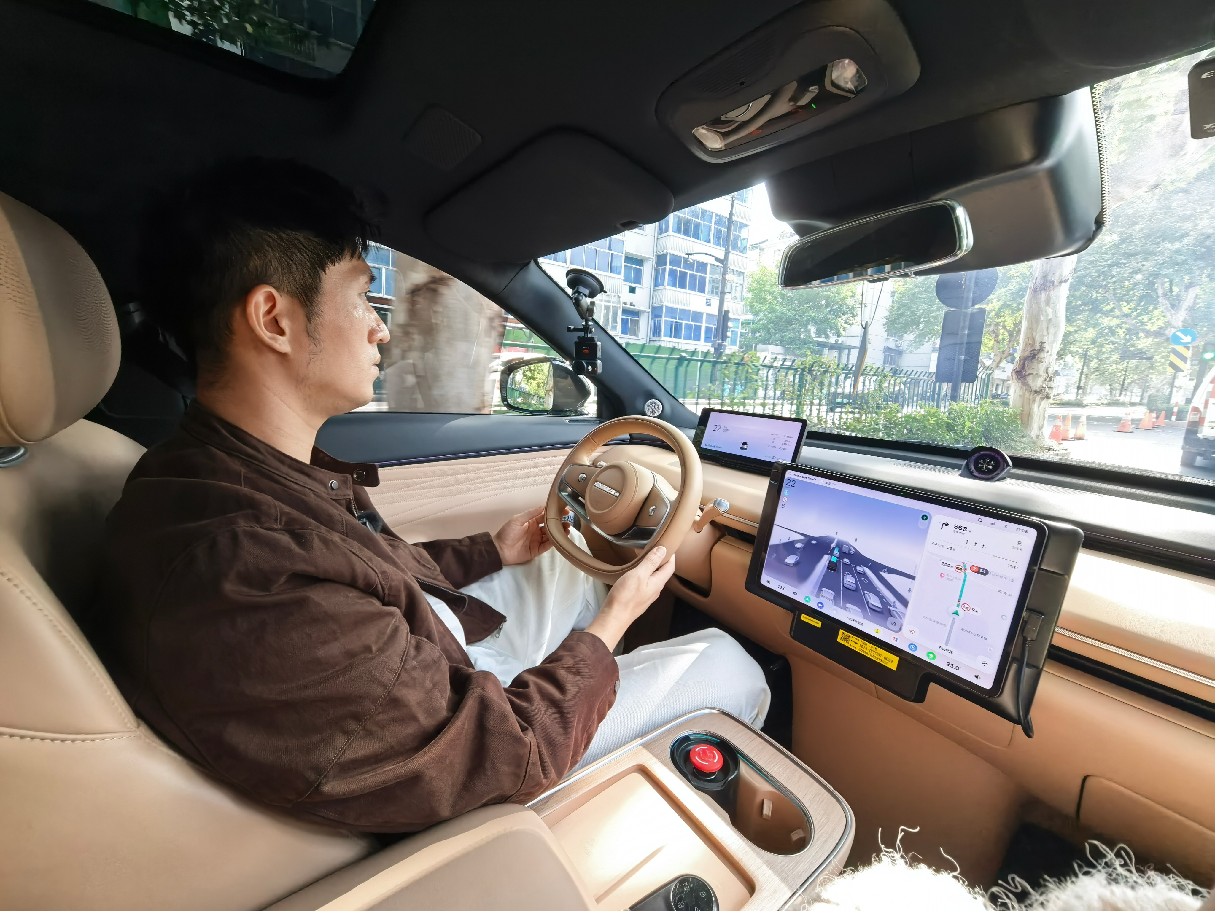 首先,基础控车能力很强,拥堵路况跟车加减速柔和,面对红灯可以实现速度从10到1的无感刹停,变道时候也是像老司机一样,根据前后车距离、实时速度、车道宽度,精准匹配转向角度,无论是司机还是乘客在车上体感非常舒适,真一段式端到端的丝滑低时延体现的非常明显。