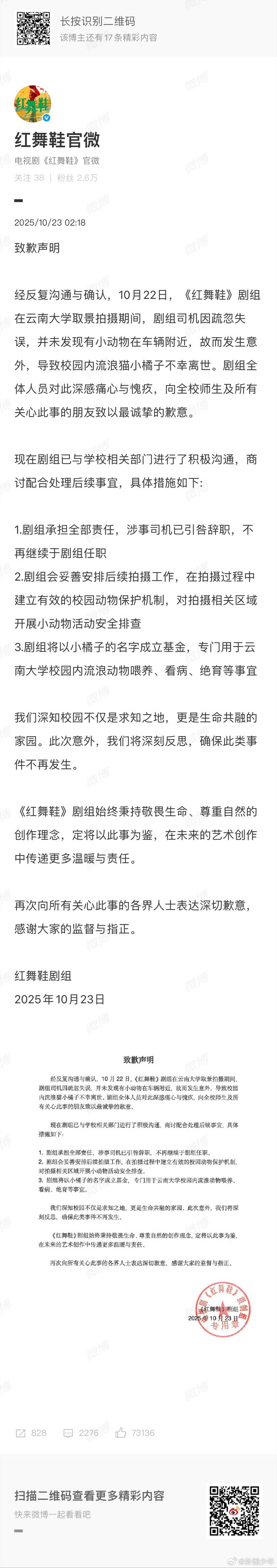 红舞鞋官微主页看不到道歉声明了道歉声明突然在主页消失,到底是删了还是被屏蔽了?之前声明里“小橘子基金”的承诺还没落地,细节全是模糊地带,现在连声明都没了踪影,这是想靠“消失”平息争议吗?