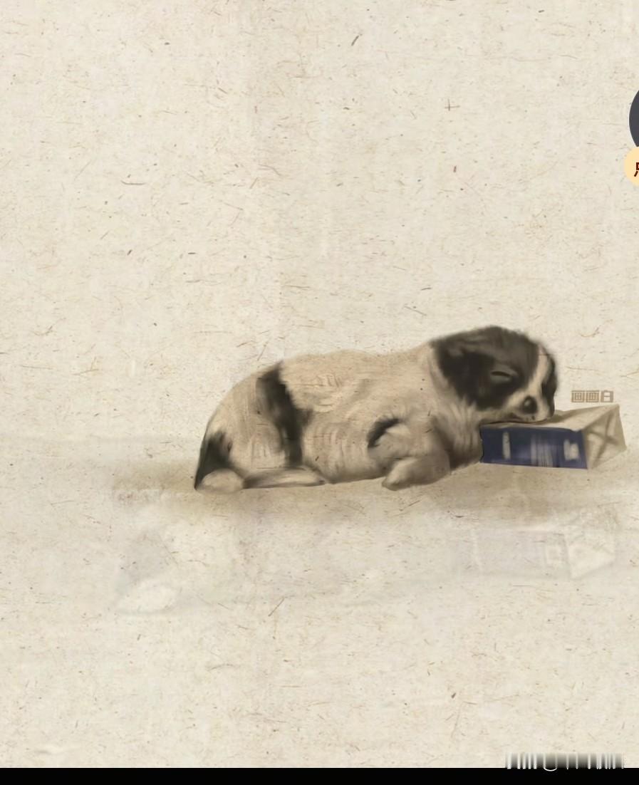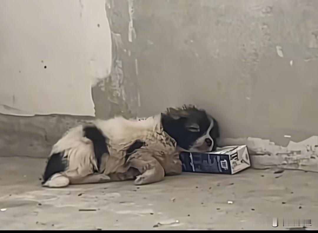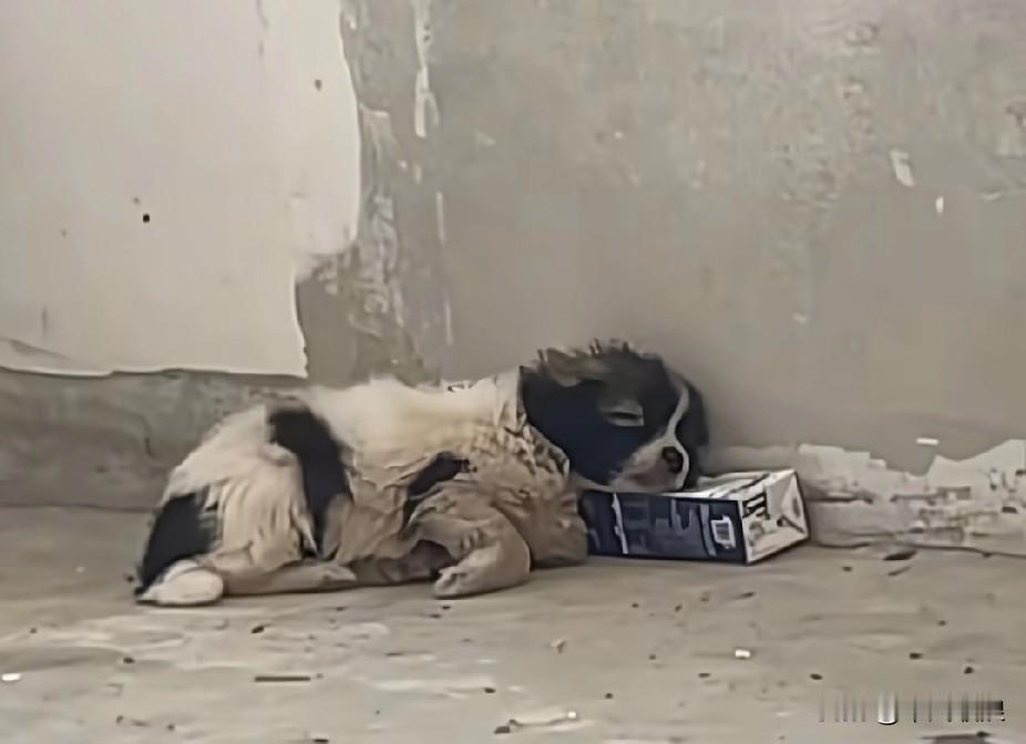 一只罹患瘟疫的小狗,蜷缩在墙的角落里,那里的墙皮已斑驳脱落。它的头倚着一个牛奶盒壳,或许只是想寻一处安静之地,静静待着。可即便如此简单的愿望,实现起来却如此艰难。得瘟疫的小狗