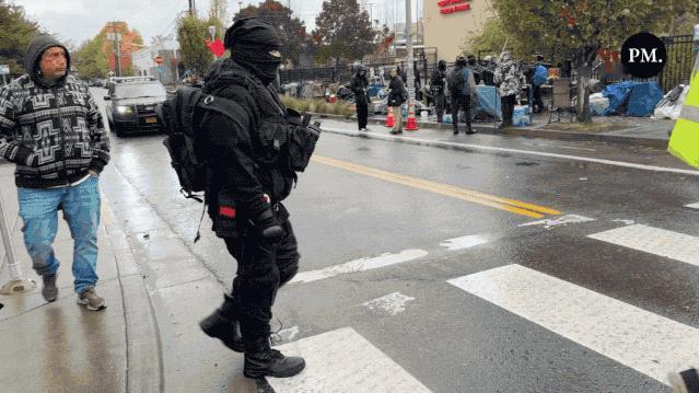 对抗特朗普:美国ANTIFA组织也有LGBT超级士兵!这是美国网友拍摄的波特兰ANTIFA组织的“超级士兵”伊莎贝尔·罗莎·阿劳霍(本名菲利普·德利奇)。这是一名LGBT人员,负责ICE设施外反法西斯占领行动的安保工作。阿劳霍于8月因在2024年反法西斯直接行动中袭击一名女性而被判有罪。但是他逃脱了牢狱之灾,目前处于缓刑期。