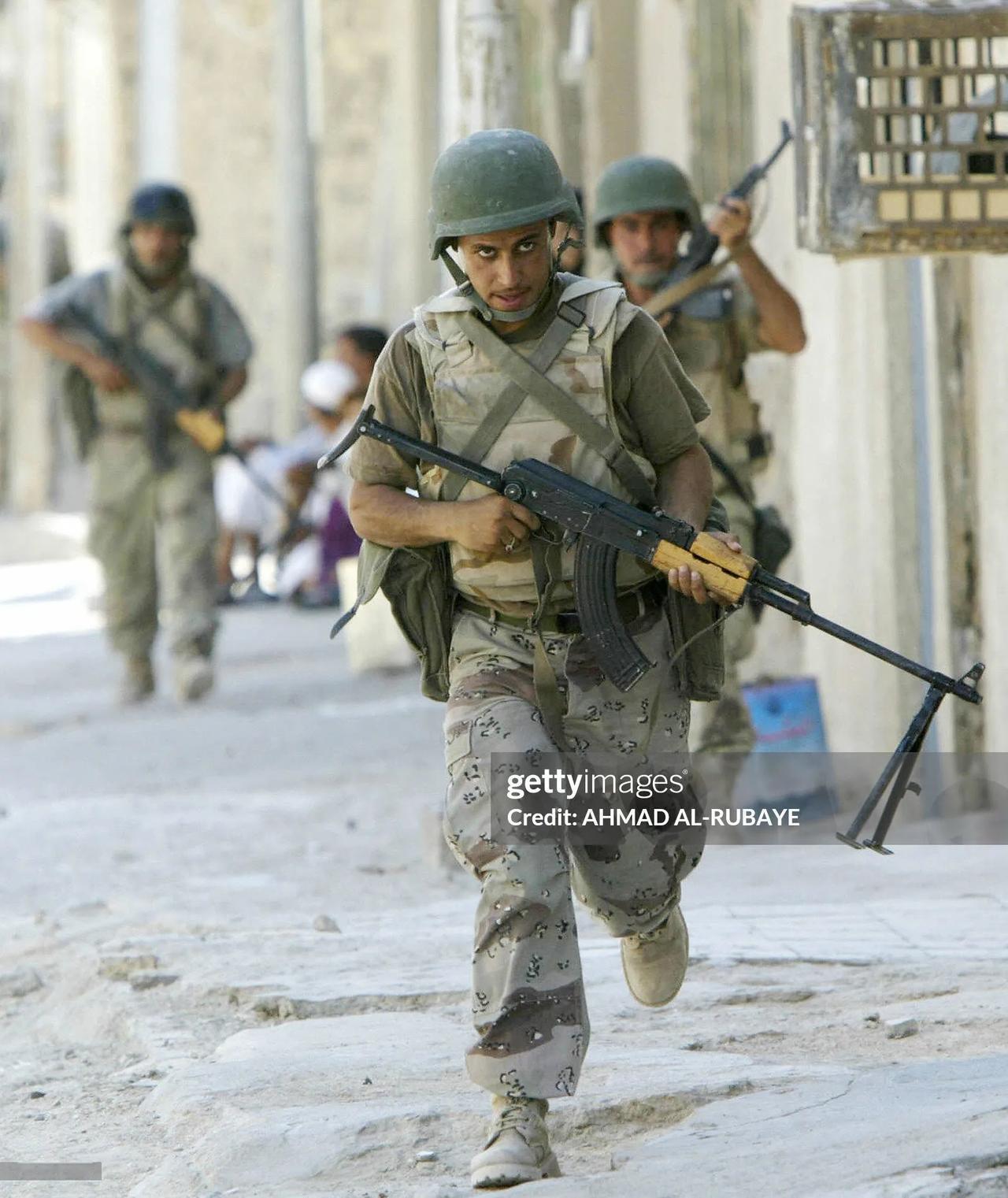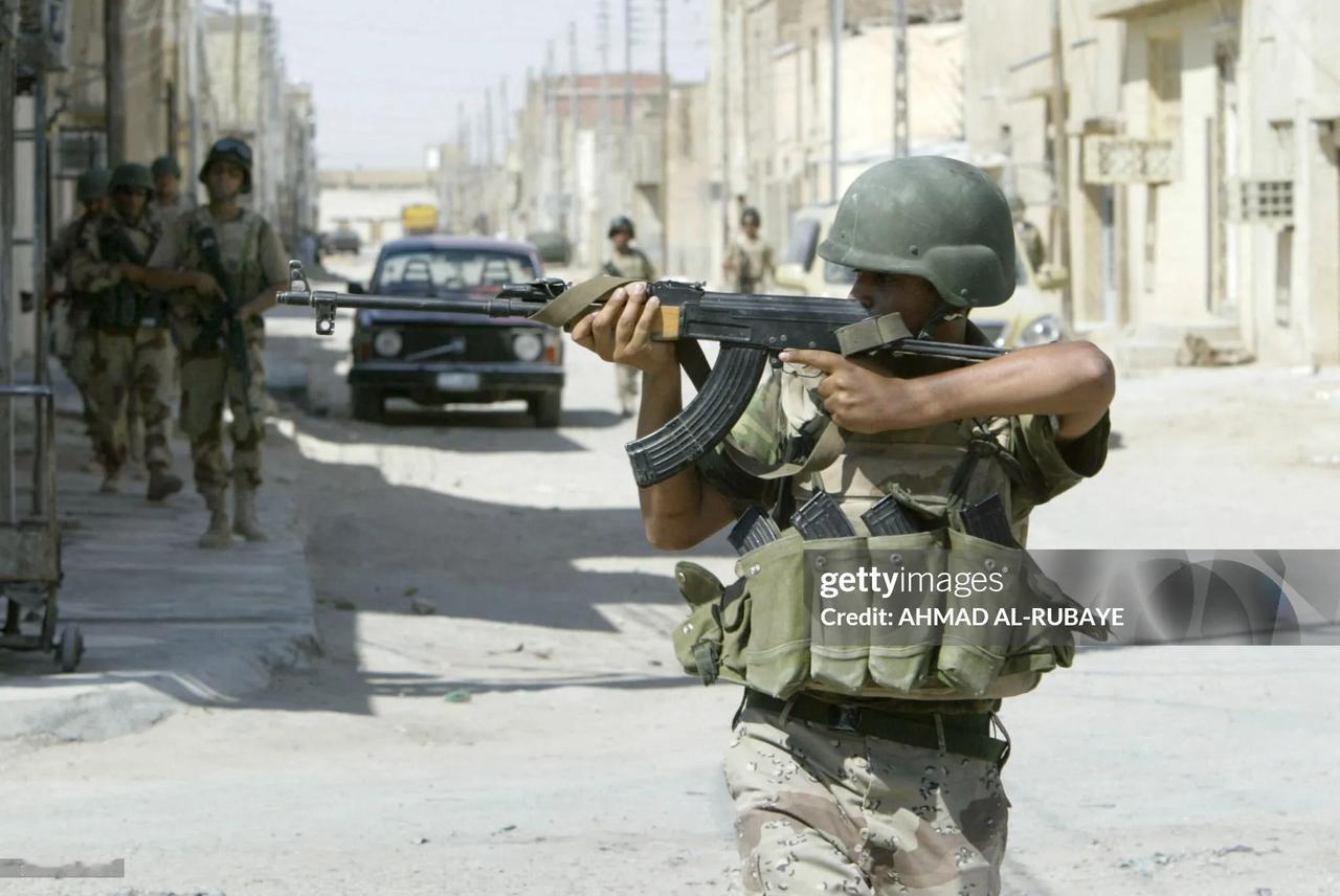 2004 年围城期间,伊拉克国民警卫队士兵均装备阿森纳 LMG-F 7.62 毫米班用自动武器,驻扎在纳杰夫附近。