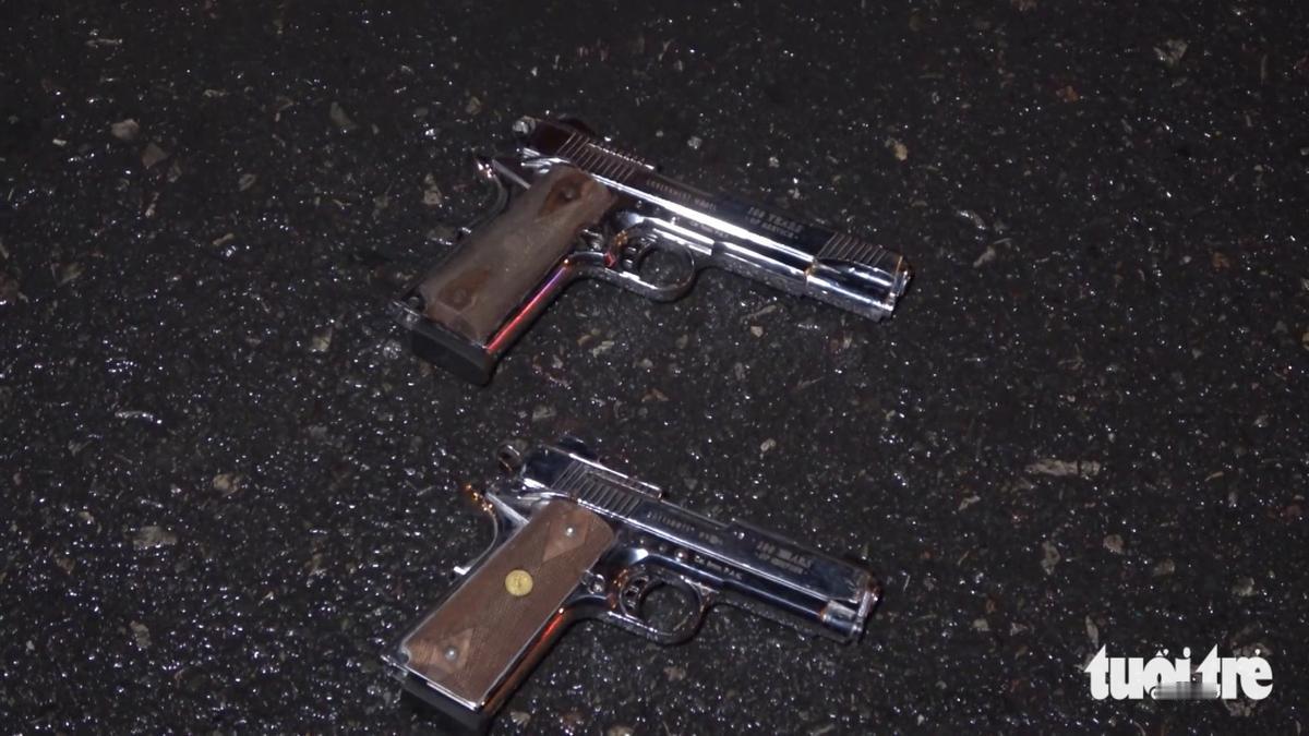 越南31人持枪打架案:缴获枪支4支及爆炸物 由于借贷发生冲突,永隆和槟椥的两群年轻人安排在前江省的一块空地上见面武力解决。 这些人年龄在24岁至35岁之间,居住在槟椥省、永隆省、后江省……他们乘坐6辆汽车(4座和7座型)从槟椥前往前江解决冲突。 现场,警方暂时收缴了4支枪(目前型号不明)、25颗子弹、1枚自制炸药、1个胡椒喷雾、1件防弹背心、5把弹簧刀、2个装有粉末的塑料袋(疑似毒品)、11部手机、6辆汽车以及1份相关文件。 经过快速检测,警方发现16人毒品检测呈阳性。 根据初步证词,这些年轻人与永隆省的另一群年轻人因借贷问题发生冲突,因此两群人安排见面打架。 集合地点是前江省美萩市第6病房K120军医院区附近的空地。然而,在途中,这些人被警方发现并及时拦截、控制和逮捕。