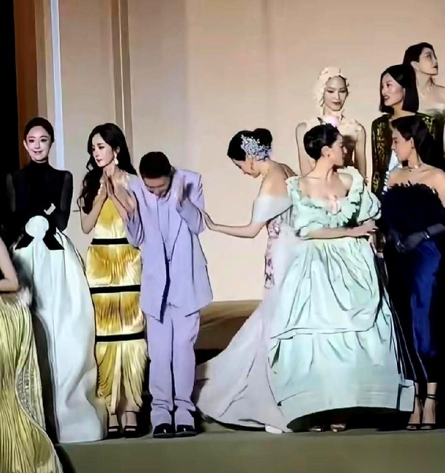 那一下,真的看得我血压都高了。 一个男的,从后面硬生生挤进杨幂和刘亦菲中间。 一