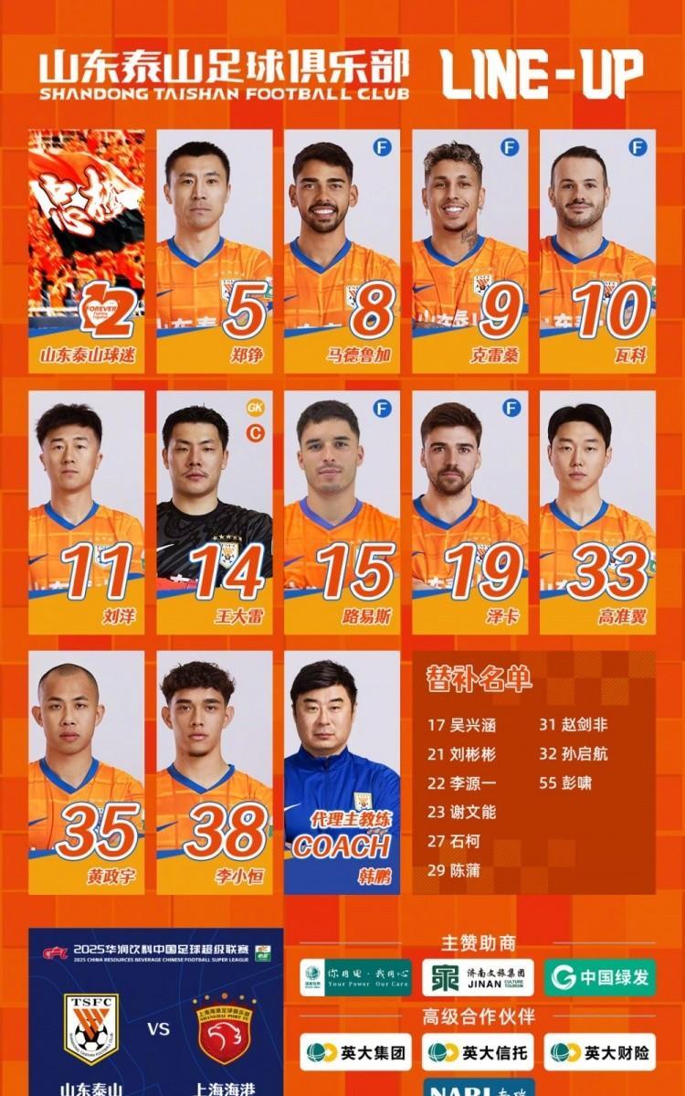 大战一触即发,双方主力尽出!五外援PK四外援,山东泰山主场对阵上海海港的比赛,山东泰山派出了瓦科、泽卡、克雷桑等五名外援出战,已经是山东泰山能够派出的最强阵容,希望主场拿下上海海港。而上海海港派出莱昂纳多、梅伦多等四名外援,想从山东泰山主场带走三分,保持连胜积分榜领先优势。 可以说,这是一场关系到联赛夺冠的关键比赛,所以央视体育频道现场直播,而且选用了外籍裁判执法比赛。 有没有注意到一个细节,本赛季央视直播山东泰山的比赛,山东泰山输多胜少,不知道今天能不能打破魔咒。 那么问题来了,您认为五外援首发的山东泰山主场能够拿下上海海港吗? 得道多助,不但山东泰山球迷支持山东泰山,今天上海申花和成都蓉城的球迷都会支持山东泰山,预测比分3:2,山东泰山险胜上海海港。#山东泰山# #成都蓉城# #上海申花# #中超#