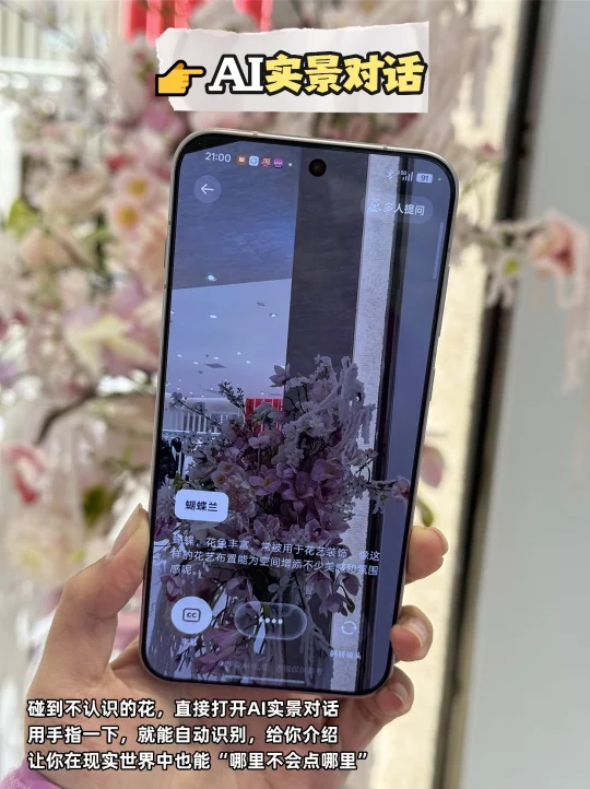 可以实时识别场景,逛公园时,碰到不认识花,直接打开AI实景对话,就能自动识别。