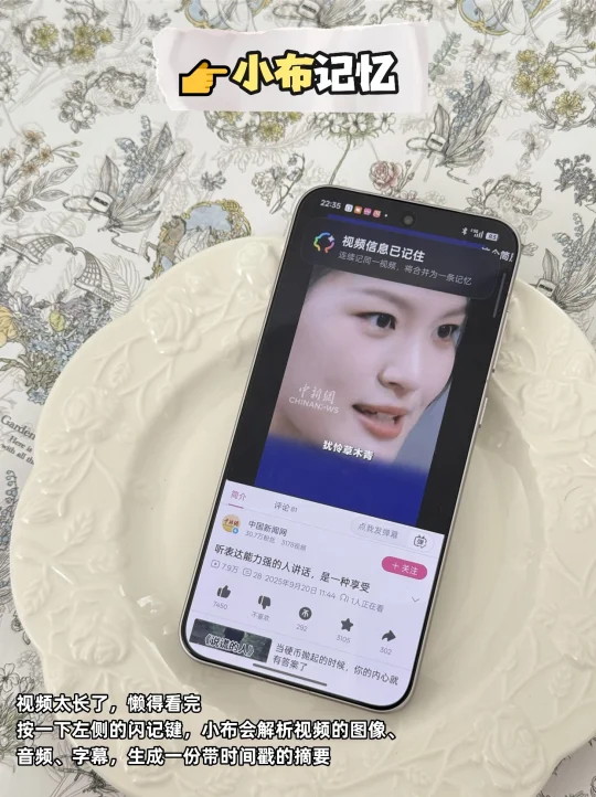 长视频懒得看完,按一下左侧闪记键,小布就会解析视频图像/音频/字幕,生成一份带时间戳摘要,点击时间线就能跳转。